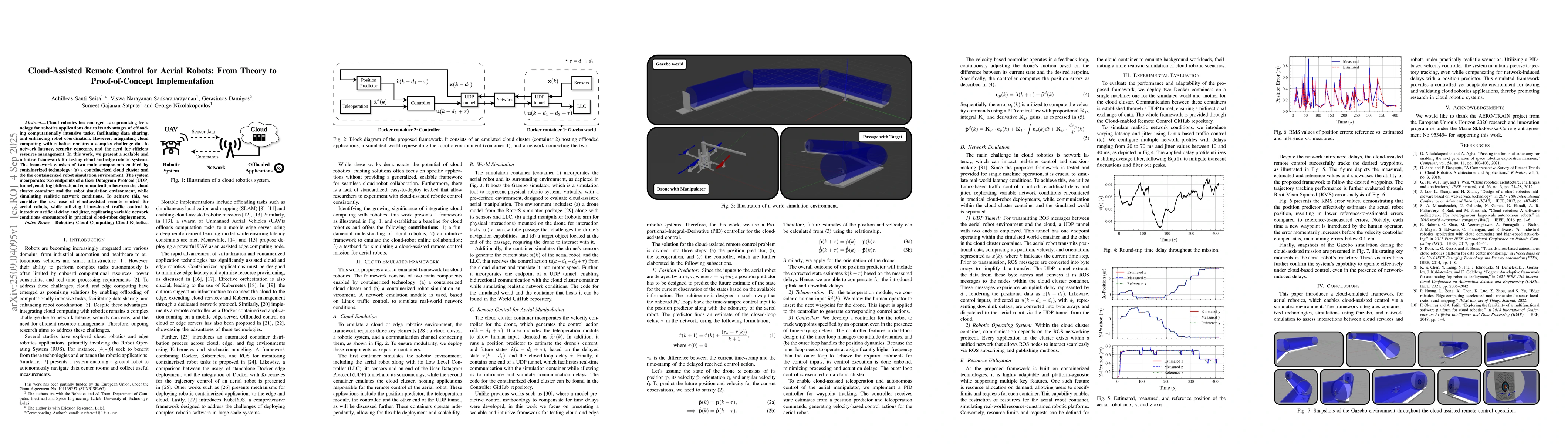 Cloud robotics has emerged as a promising technology for robotics applications due to its advantages of offloading computationally intensive tasks, facilitating data sharing, and enhancing robot coordination. However, integrating cloud computing with robotics remains a complex challenge due to network latency, security concerns, and the need for efficient resource management. In this work, we present a scalable and intuitive framework for testing cloud and edge robotic systems. The framework consists of two main components enabled by containerized technology: (a) a containerized cloud cluster and (b) the containerized robot simulation environment. The system incorporates two endpoints of a User Datagram Protocol (UDP) tunnel, enabling bidirectional communication between the cloud cluster container and the robot simulation environment, while simulating realistic network conditions. To achieve this, we consider the use case of cloud-assisted remote control for aerial robots, while utilizing Linux-based traffic control to introduce artificial delay and jitter, replicating variable network conditions encountered in practical cloud-robot deployments.