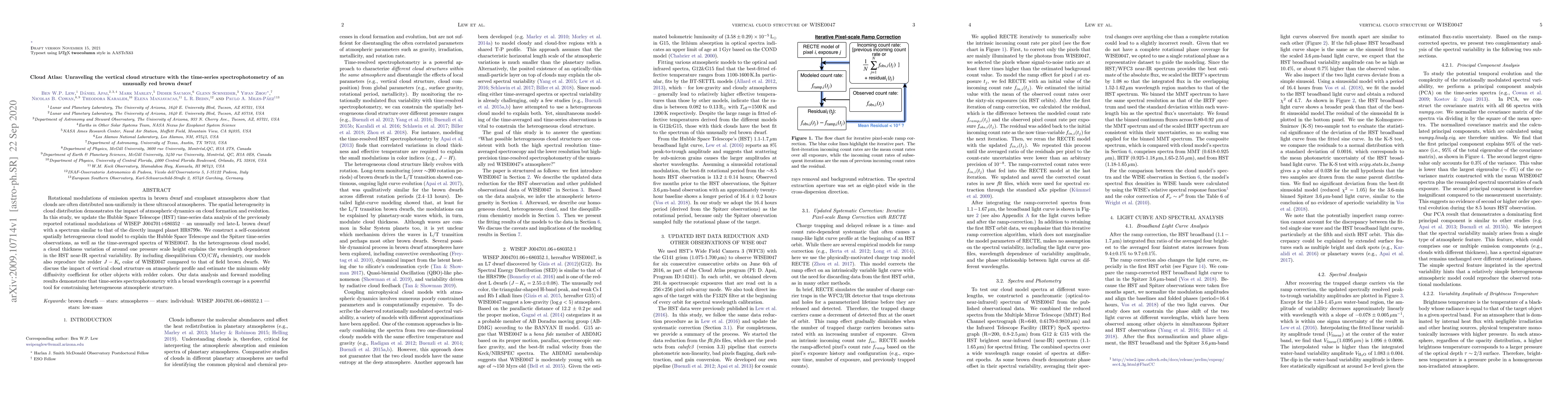 This study analyzes time-series spectrophotometry of the red brown dwarf WISEP J004701+680352, revealing non-uniform cloud distribution in its atmosphere. The researchers developed a heterogeneous cloud model that explains observed spectral variability and redder color, attributing these to vertical cloud structure and disequilibrium CO/CH4 chemistry. The findings suggest that broad wavelength spectrophotometry can effectively constrain heterogeneous atmospheric structures in similar objects.