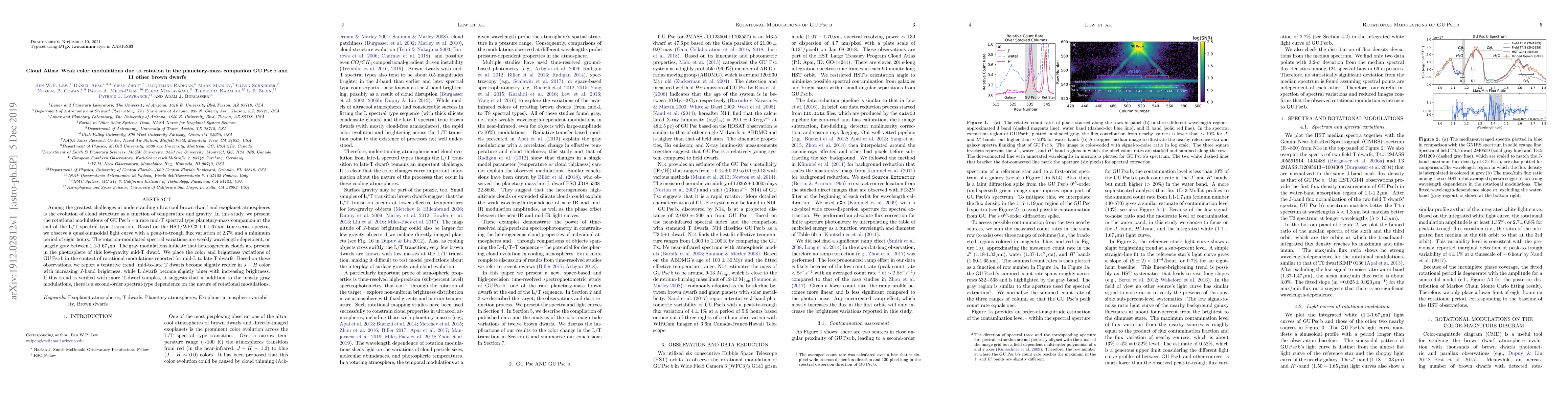 This study investigates the rotational modulation of GU Psc b, a mid-T spectral type planetary-mass companion, revealing weak color modulations due to rotation. Observations from HST/WFC3 indicate a quasi-sinusoidal light curve with minimal wavelength dependence, suggesting the presence of heterogeneous clouds in the photosphere.
