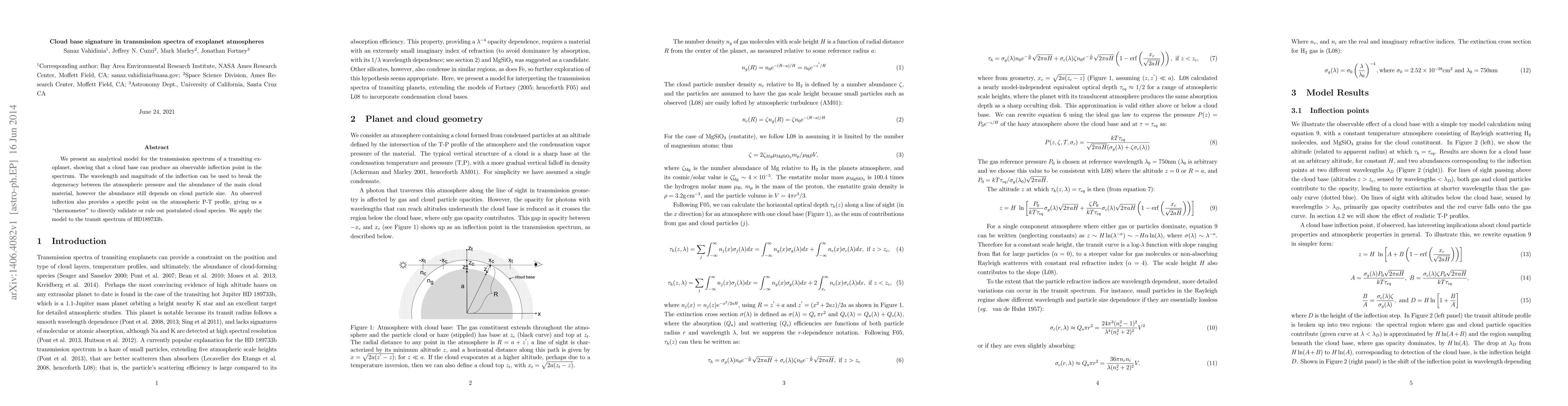 This paper develops an analytical model to identify cloud base signatures in exoplanet transmission spectra, demonstrating that an inflection point can reveal atmospheric pressure and cloud material abundance, though particle size remains a variable. The model is applied to HD 189733b, offering a method to validate cloud species in exoplanet atmospheres.