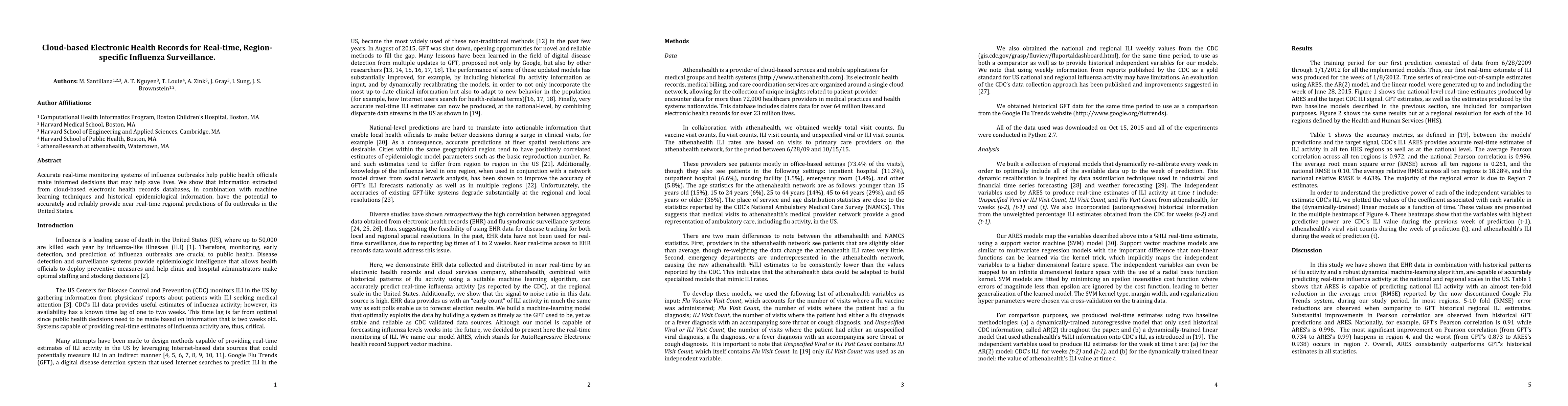 This study demonstrates that cloud-based electronic health records, enhanced with machine learning and historical data, can provide accurate and timely regional predictions of influenza outbreaks in the U.S., aiding public health decision-making.
