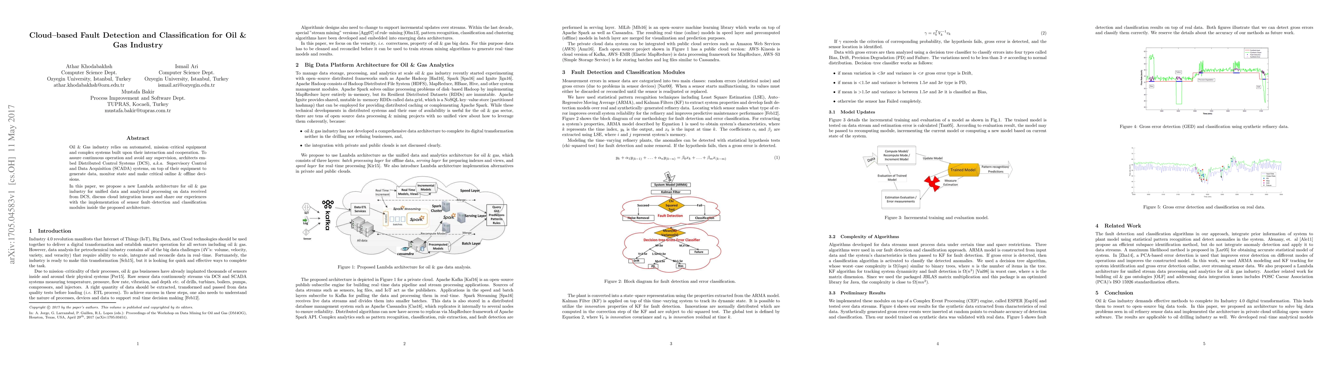 Oil & Gas industry relies on automated, mission-critical equipment and complex systems built upon their interaction and cooperation. To assure continuous operation and avoid any supervision, architects embed Distributed Control Systems (DCS), a.k.a. Supervisory Control and Data Acquisition (SCADA) systems, on top of their equipment to generate data, monitor state and make critical online & offline decisions. In this paper, we propose a new Lambda architecture for oil & gas industry for unified data and analytical processing on data received from DCS, discuss cloud integration issues and share our experiences with the implementation of sensor fault-detection and classification modules inside the proposed architecture.