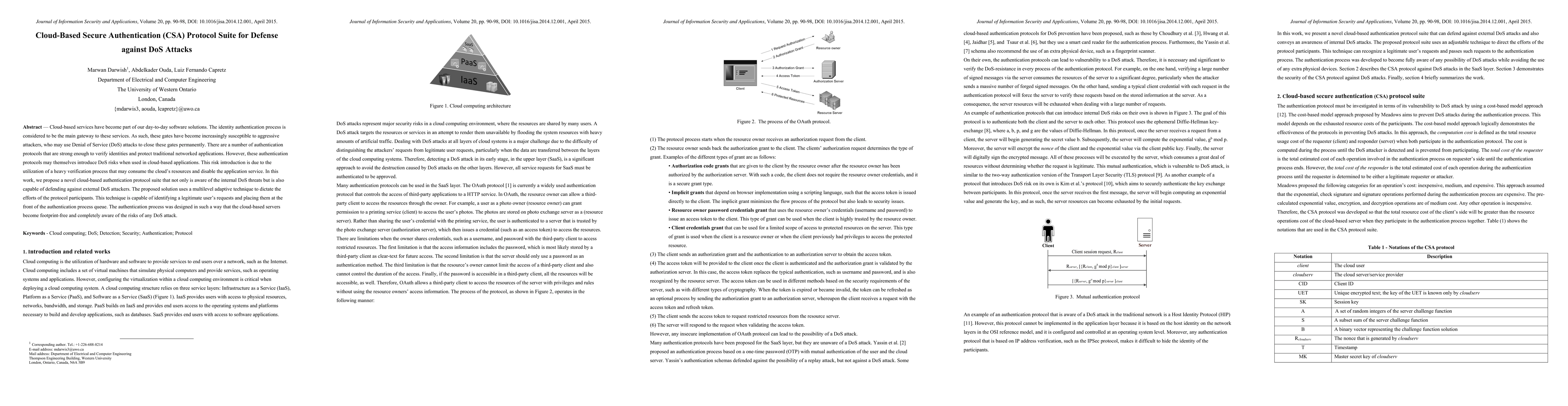 The proposed CSA protocol suite aimed to prevent internal and external risks to DoS attacks using an adaptive challenge technique based on the required efforts of the participants.
