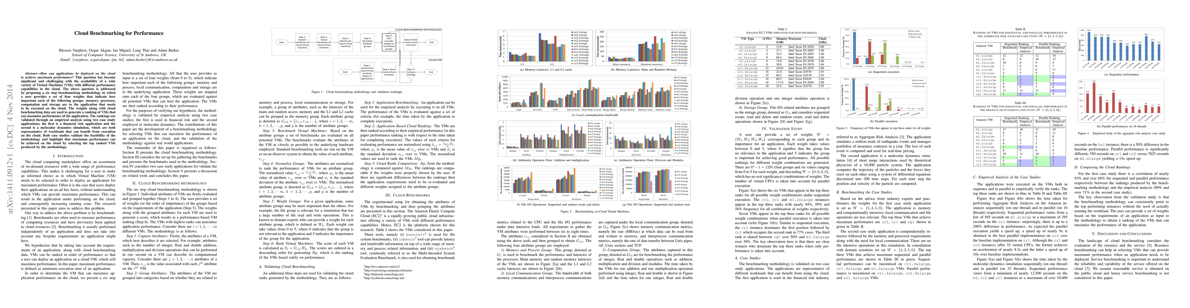 This paper proposes a six-step benchmarking methodology to deploy applications on the cloud for maximum performance, using weights for memory, processor, computation, and storage to rank Virtual Machines. Empirical validation through financial risk and molecular dynamics simulations confirms the methodology's effectiveness.