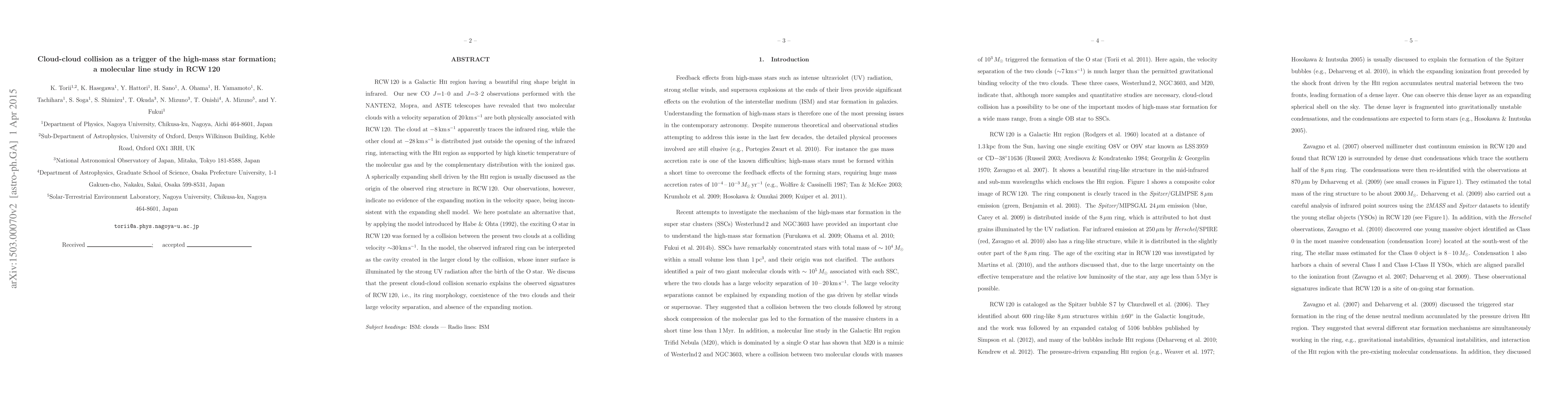 This study proposes that a cloud-cloud collision, rather than an expanding shell, triggered high-mass star formation in RCW120. Observations reveal two molecular clouds with a significant velocity separation, suggesting a collision that created the region's ring structure and the O star.
