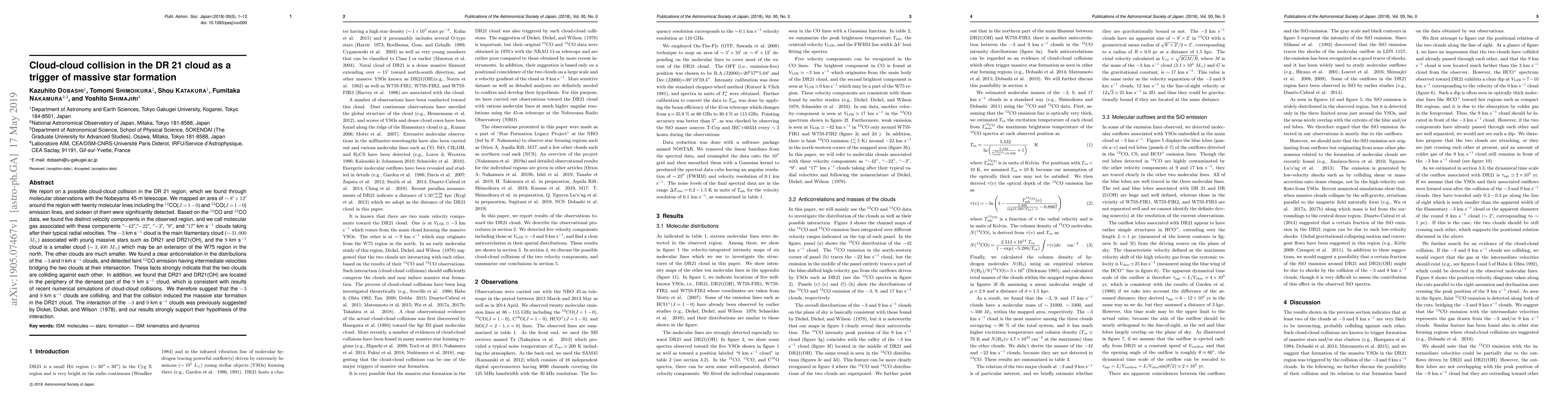 This paper uses molecular observations to identify a cloud-cloud collision in the DR 21 region, suggesting that the interaction between the -3 and 9 km/s clouds may have triggered massive star formation in the area. The study supports earlier hypotheses of such an interaction.