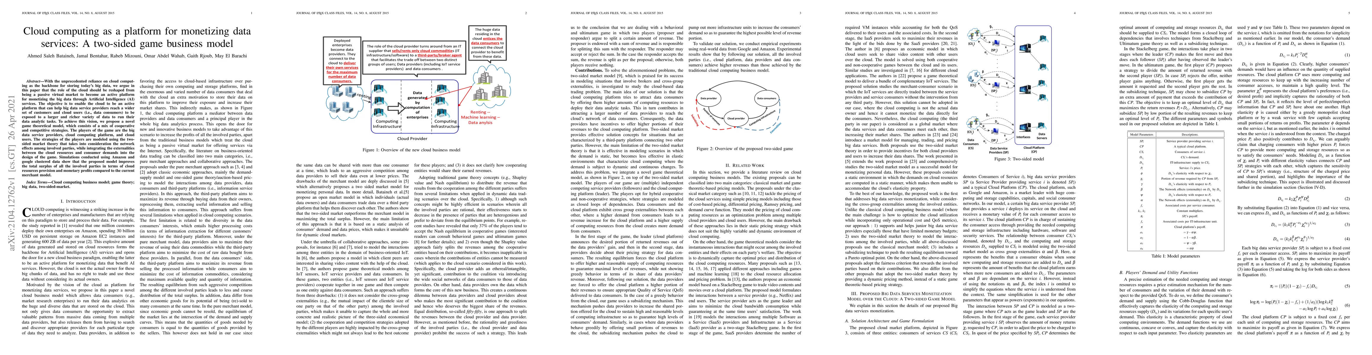 This paper proposes a game theoretical model to transform cloud computing into an active platform for monetizing big data through AI services, leveraging a two-sided market approach to enhance both data service providers' reach and cloud users' access to diverse data. Simulation results indicate the model's effectiveness in improving resource provision and profits over traditional merchant models.