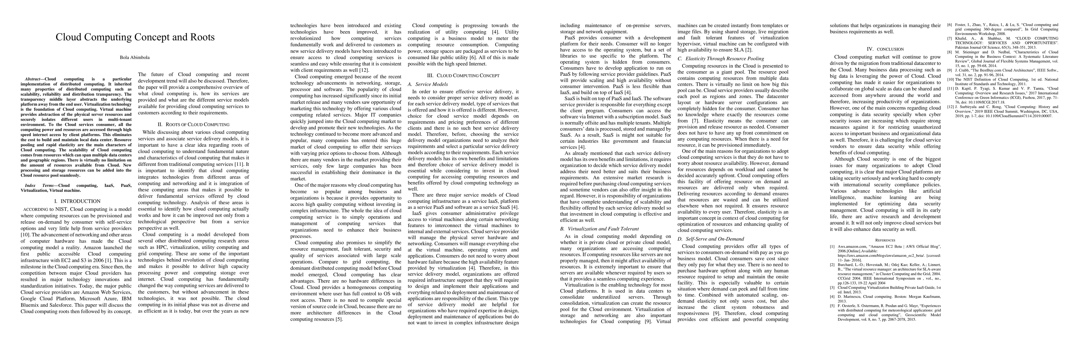This paper explores the concept and foundational technologies of cloud computing, emphasizing its scalability, reliability, and resource pooling facilitated by virtualization. It highlights how cloud services provide seamless access to computing resources over the internet, eliminating the need for local data centers.