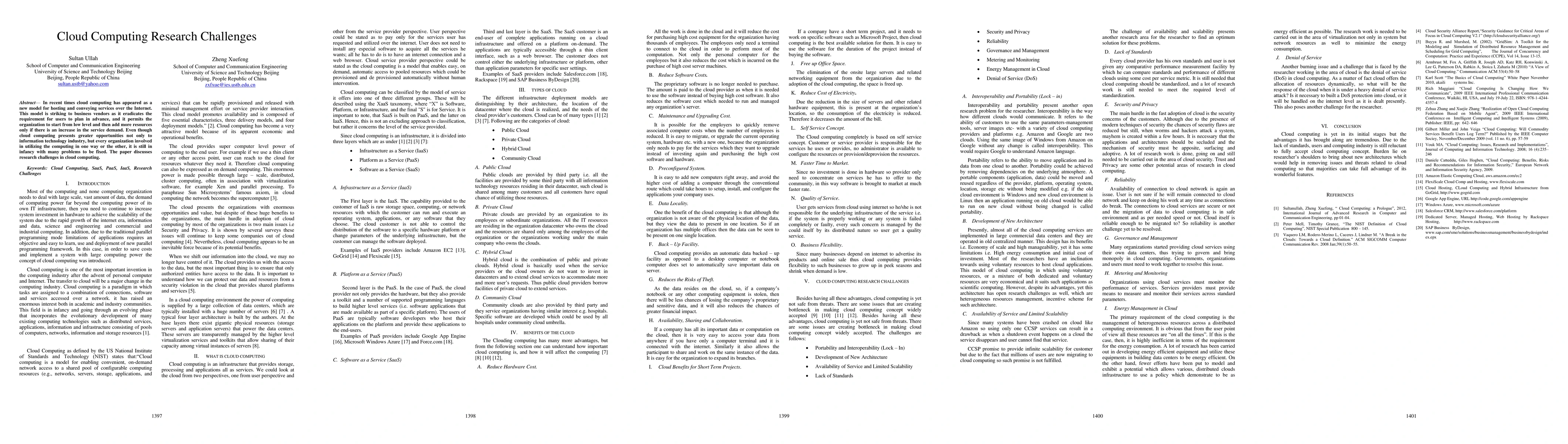 This paper explores the emerging model of cloud computing, highlighting its benefits for businesses and its potential across various sectors, while also addressing the significant challenges and research gaps that remain to be resolved in this nascent field.