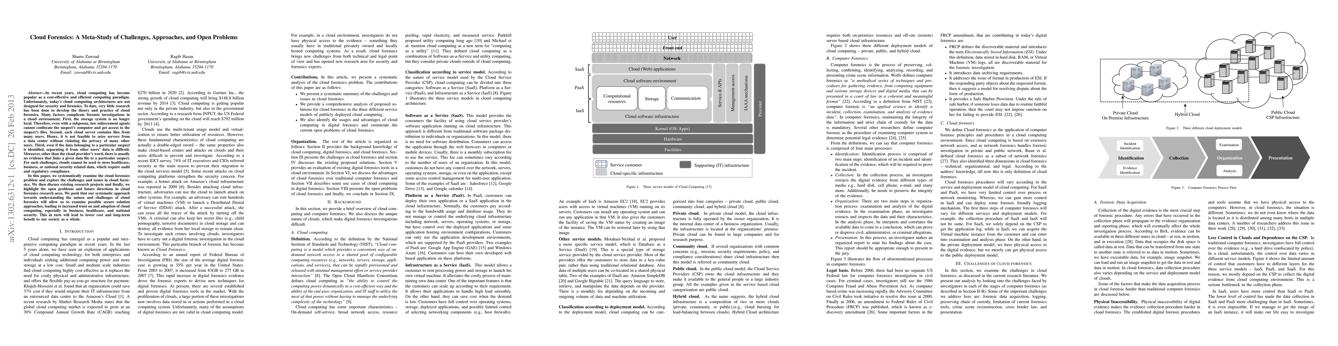 This paper systematically examines the challenges and issues in cloud forensics, highlighting the difficulties in conducting investigations due to the distributed and multi-tenant nature of cloud computing. It also discusses existing research efforts and identifies open problems and future research directions, aiming to foster trust and adoption of cloud services in critical sectors.