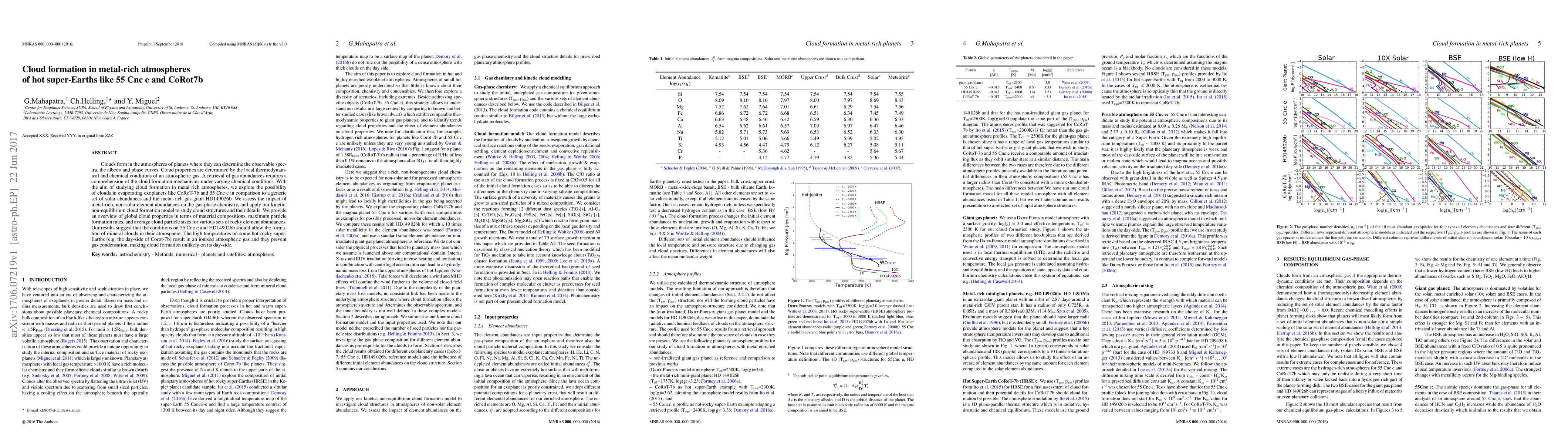 Clouds form in the atmospheres of planets where they can determine the observable spectra, the albedo and phase curves. Cloud properties are determined by the local thermodynamical and chemical conditions of an atmospheric gas. A retrieval of gas abundances requires a comprehension of the cloud formation mechanisms under varying chemical conditions. With the aim of studying cloud formation in metal rich atmospheres, we explore the possibility of clouds in evaporating exoplanets like CoRoT-7b and 55 Cnc e in comparison to a generic set of solar abundances and the metal-rich gas giant HD149026b. We assess the impact of metal-rich, non-solar element abundances on the gas-phase chemistry, and apply our kinetic, non-equilibrium cloud formation model to study cloud structures and their details. We provide an overview of global cloud properties in terms of material compositions, maximum particle formation rates, and average cloud particle sizes for various sets of rocky element abundances. Our results suggest that the conditions on 55 Cnc e and HD149026b should allow the formation of mineral clouds in their atmosphere. The high temperatures on some hot-rocky super-Earths (e.g. the day-side of Corot-7b) result in an ionised atmospheric gas and they prevent gas condensation, making cloud formation unlikely on its day-side.