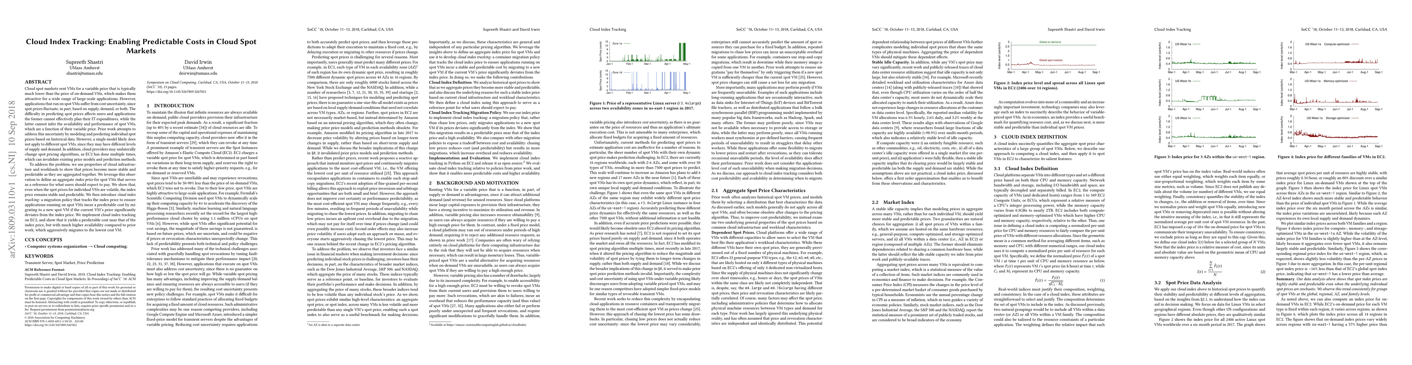 This paper proposes a method to create a stable aggregate index price for spot VMs in cloud computing to mitigate cost uncertainty, and introduces cloud index tracking as a migration policy to ensure predictable costs by dynamically adjusting VMs based on price deviations from the index.