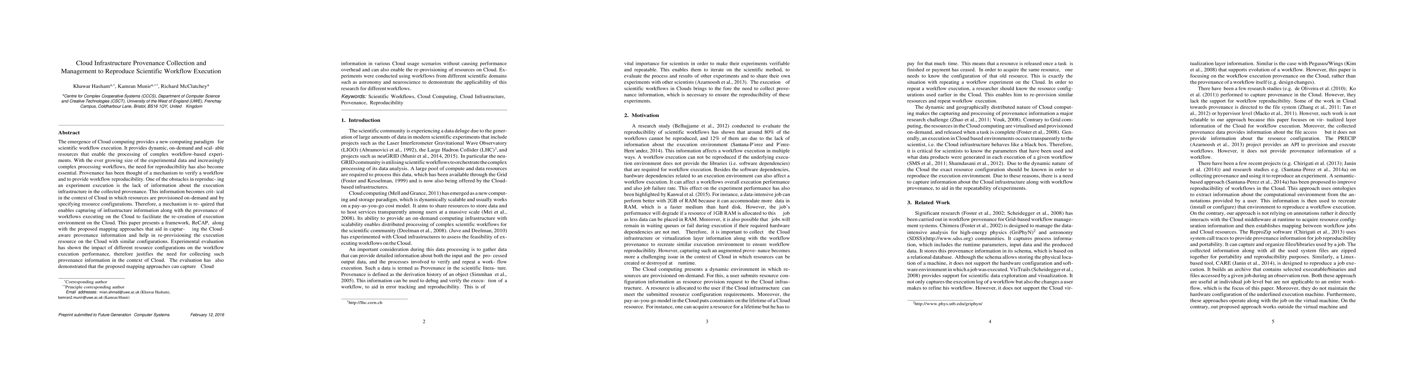 This paper introduces ReCAP, a framework for collecting and managing cloud infrastructure provenance to reproduce scientific workflow execution. It demonstrates that capturing infrastructure information in provenance is crucial for workflow reproducibility in cloud environments, and presents mapping approaches to achieve this without performance overhead.