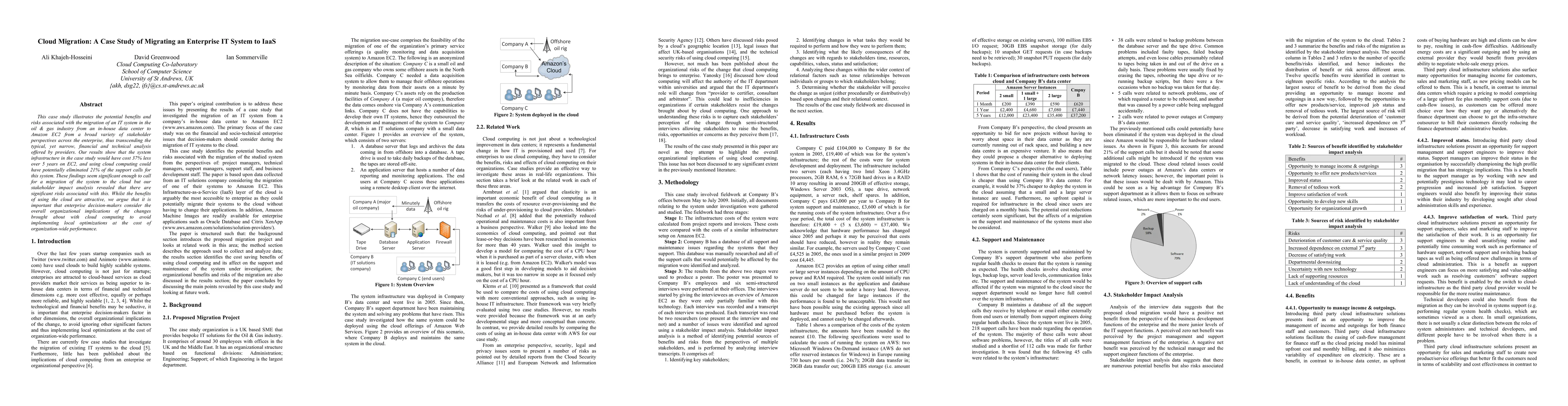 This case study examines the migration of an oil & gas enterprise's IT system to Amazon EC2, revealing a 37% cost reduction over 5 years and a potential 21% reduction in support calls. However, it also highlights significant risks and organizational implications that must be considered alongside the financial benefits.