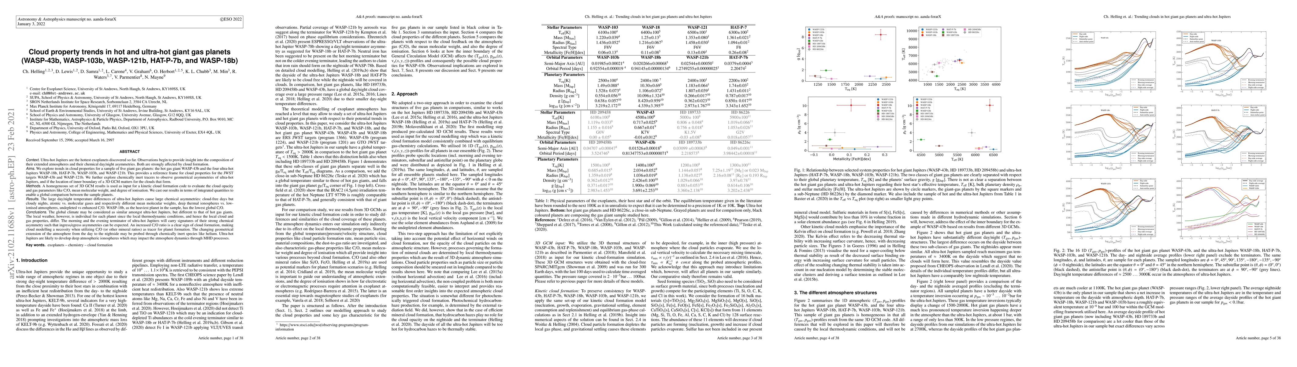Ultra-hot Jupiters are the hottest exoplanets discovered so far. Observations begin to provide insight into the composition of their extended atmospheres and their chemical day/night asymmetries. Both are strongly affected by cloud formation. We explore trends in cloud properties for a sample of five giant gas planets: WASP-43b, WASP-18b, HAT-P-7b, WASP-103b, and WASP-121b. This provides a reference frame for cloud properties for the JWST targets WASP-43b and WASP-121b. We further explore chemically inert tracers to observe geometrical asymmetries, and if the location of inner boundary of a 3D GCM matters for the clouds that form. The large day/night temperature differences of ultra-hot Jupiters cause large chemical asymmetries: cloud-free days but cloudy nights, atomic vs. molecular gases and respectively different mean molecular weights, deep thermal ionospheres vs. low-ionised atmospheres, undepleted vs enhanced C/O. WASP-18b, as the heaviest planet in the sample, has the lowest global C/O. The global climate may be considered as similar amongst ultra-hot Jupiters, but different to that of hot gas giants. The local weather, however, is individual for each planet since the local thermodynamic conditions, and hence the local cloud and gas properties, differ. The morning and the evening terminator of ultra-hot Jupiters will carry signatures of their strong chemical asymmetry such that ingress/egress asymmetries can be expected. An increased C/O ratio is a clear sign of cloud formation, making cloud modelling a necessity when utilizing C/O (or other mineral ratios) as tracer for planet formation. The changing geometrical extension of the atmosphere from the day to the nightside may be probed through chemically inert species like helium. Ultra-hot Jupiters are likely to develop deep atmospheric ionospheres which may impact the atmosphere dynamics through MHD processes.
