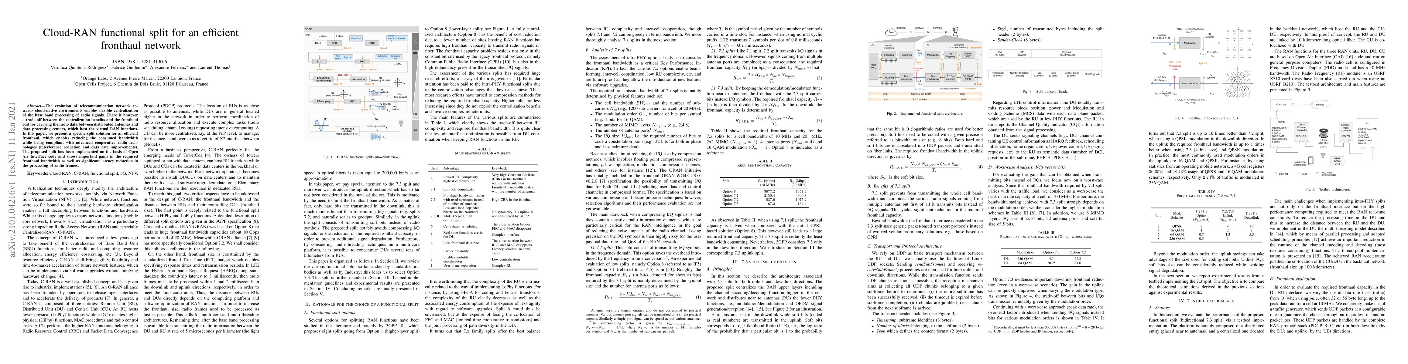 This paper proposes a functional split solution for Cloud-RAN to optimize fronthaul networks, balancing centralization benefits with reduced fronthaul costs and bandwidth consumption, while enhancing cooperative radio technologies. The solution demonstrates significant improvements in fronthaul bandwidth and latency reduction, validated through Open Air Interface implementation.