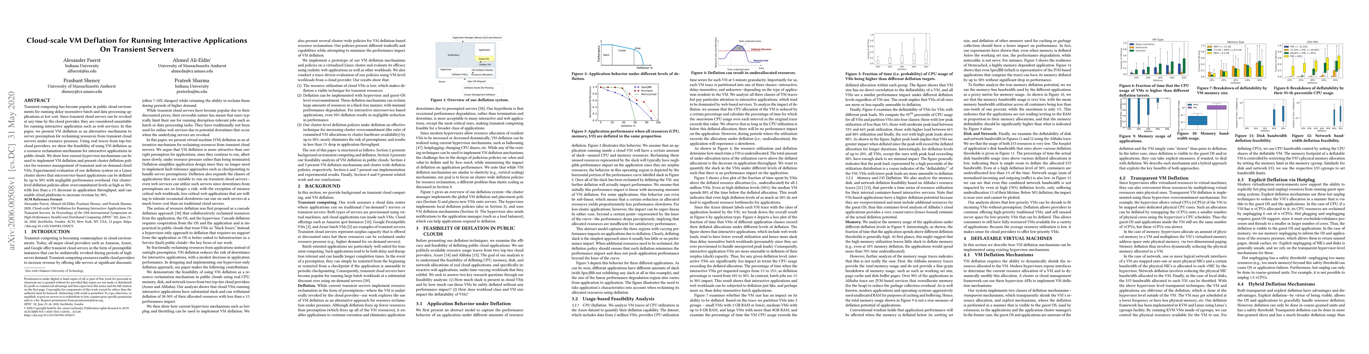 This paper proposes VM deflation as a method to reclaim resources from transient cloud servers under pressure, enabling interactive applications like web services to run on such servers. Experimental results show that microservice-based applications can be deflated by up to 50% with minimal performance loss, allowing for up to 50% overcommitment and a potential 30% increase in cloud platform revenue.