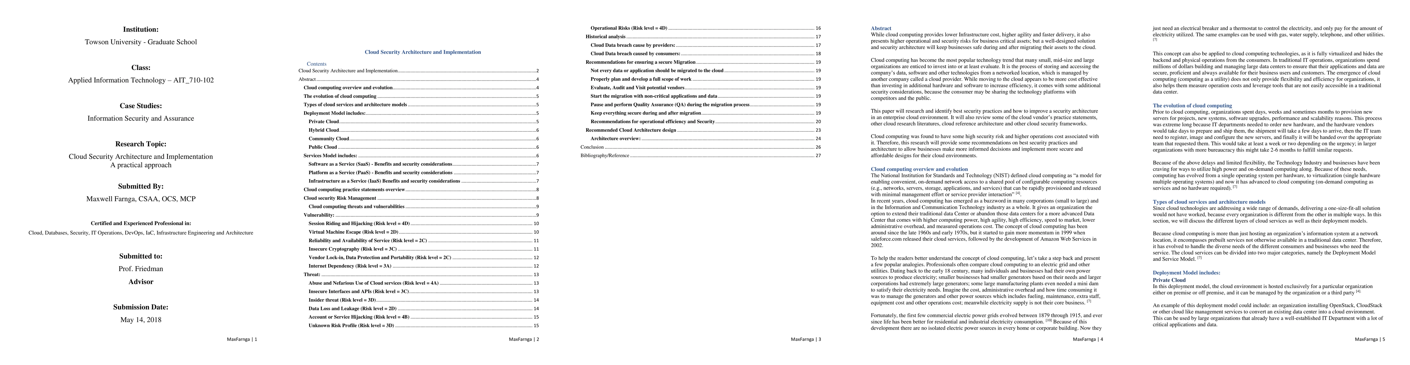The paper offers a detailed analysis of various cloud security risks and practical mitigation techniques, contributing to the body of knowledge on cloud security architecture.