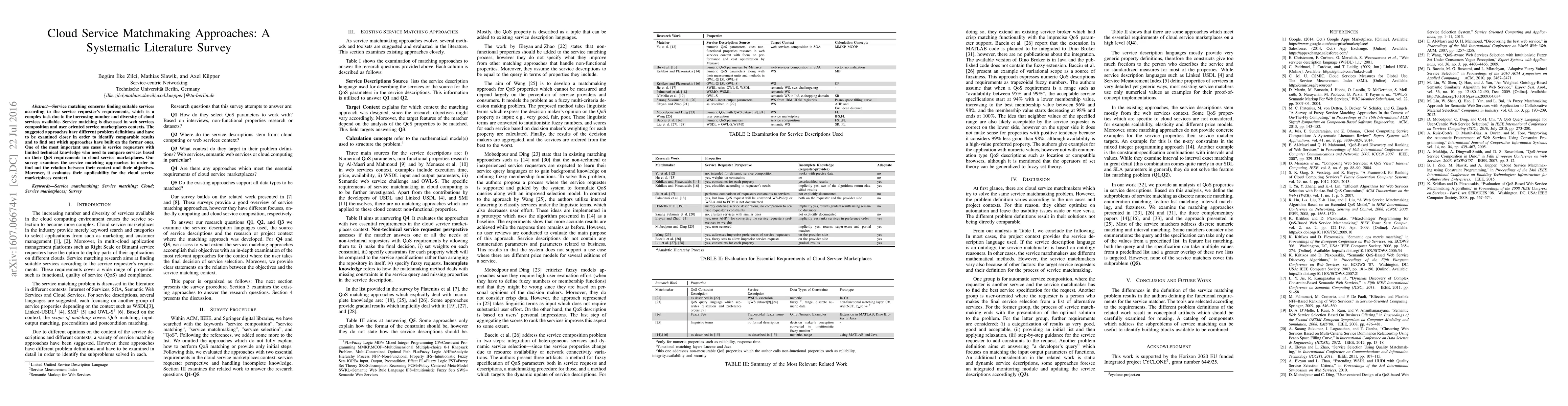 This paper systematically reviews cloud service matchmaking approaches to identify how they match services to user requirements, especially for those with limited technical knowledge. It evaluates the approaches' contexts and objectives to determine their effectiveness in cloud service marketplaces.