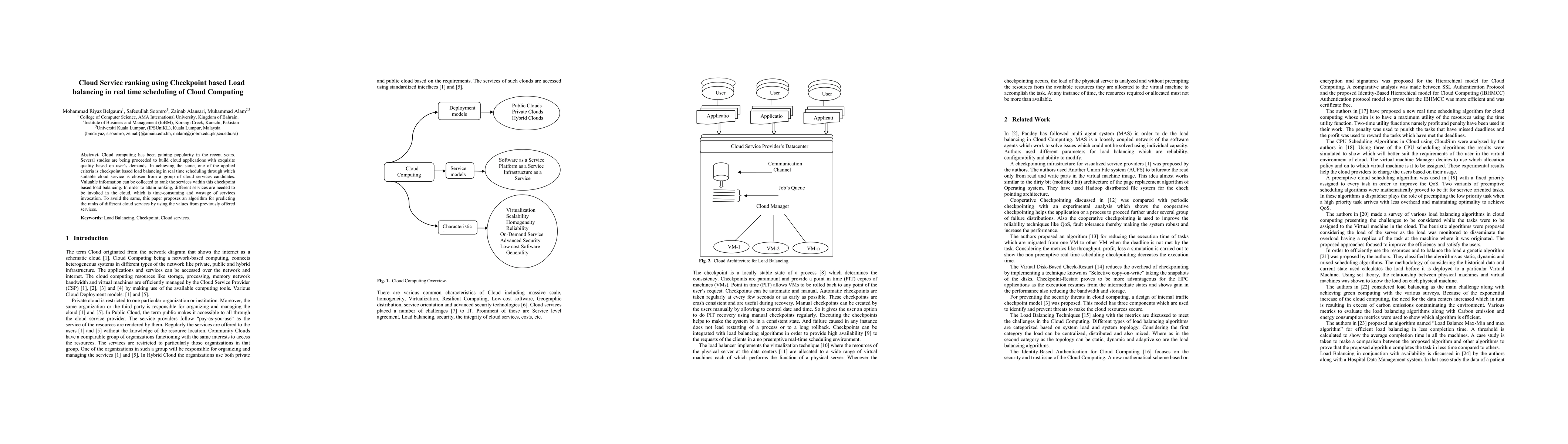 This paper proposes an algorithm to rank cloud services using checkpoint-based load balancing in real-time scheduling, aiming to predict service ranks without invoking all services, thereby saving time and resources. The method leverages previously offered service values to enhance the ranking process.
