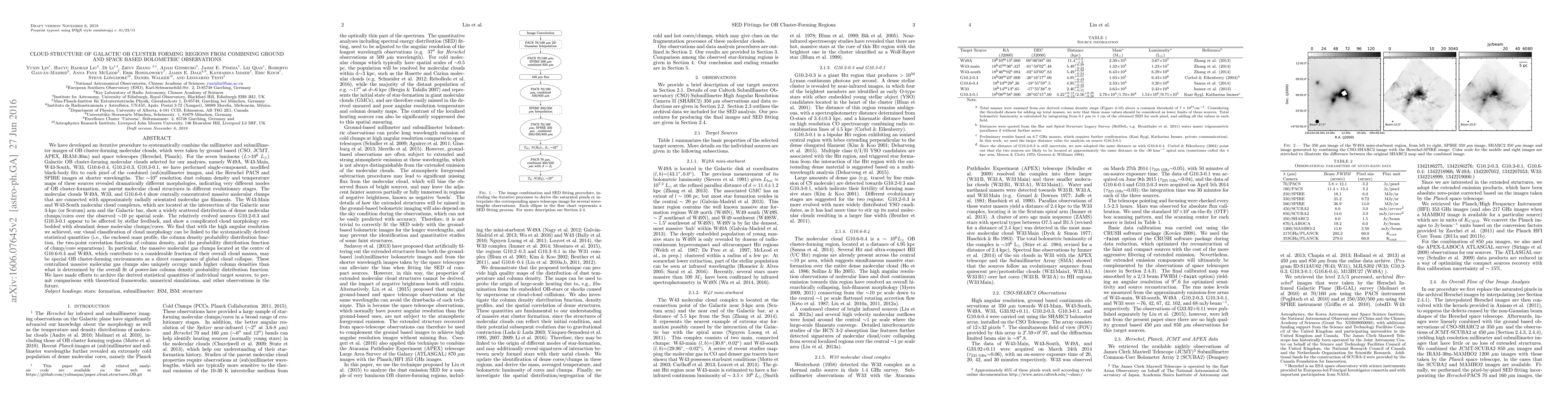We have developed an iterative procedure to systematically combine the millimeter and submillimeter images of OB cluster-forming molecular clouds, which were taken by ground based (CSO, JCMT, APEX, IRAM-30m) and space telescopes (Herschel, Planck). For the seven luminous ($L$$>$10$^{6}$ $L_{\odot}$) Galactic OB cluster-forming molecular clouds selected for our analyses, namely W49A, W43-Main, W43-South, W33, G10.6-0.4, G10.2-0.3, G10.3-0.1, we have performed single-component, modified black-body fits to each pixel of the combined (sub)millimeter images, and the Herschel PACS and SPIRE images at shorter wavelengths. The $\sim$10$"$ resolution dust column density and temperature maps of these sources revealed dramatically different morphologies, indicating very different modes of OB cluster-formation, or parent molecular cloud structures in different evolutionary stages. The molecular clouds W49A, W33, and G10.6-0.4 show centrally concentrated massive molecular clumps that are connected with approximately radially orientated molecular gas filaments. The W43-Main and W43-South molecular cloud complexes, which are located at the intersection of the Galactic near 3-kpc (or Scutum) arm and the Galactic bar, show a widely scattered distribution of dense molecular clumps/cores over the observed $\sim$10 pc spatial scale. The relatively evolved sources G10.2-0.3 and G10.3-0.1 appear to be affected by stellar feedback, and show a complicated cloud morphology embedded with abundant dense molecular clumps/cores. We find that with the high angular resolution we achieved, our visual classification of cloud morphology can be linked to the systematically derived statistical quantities (i.e., the enclosed mass profile, the column density probability distribution function, the two-point correlation function of column density, and the probability distribution function of clump/core separations).