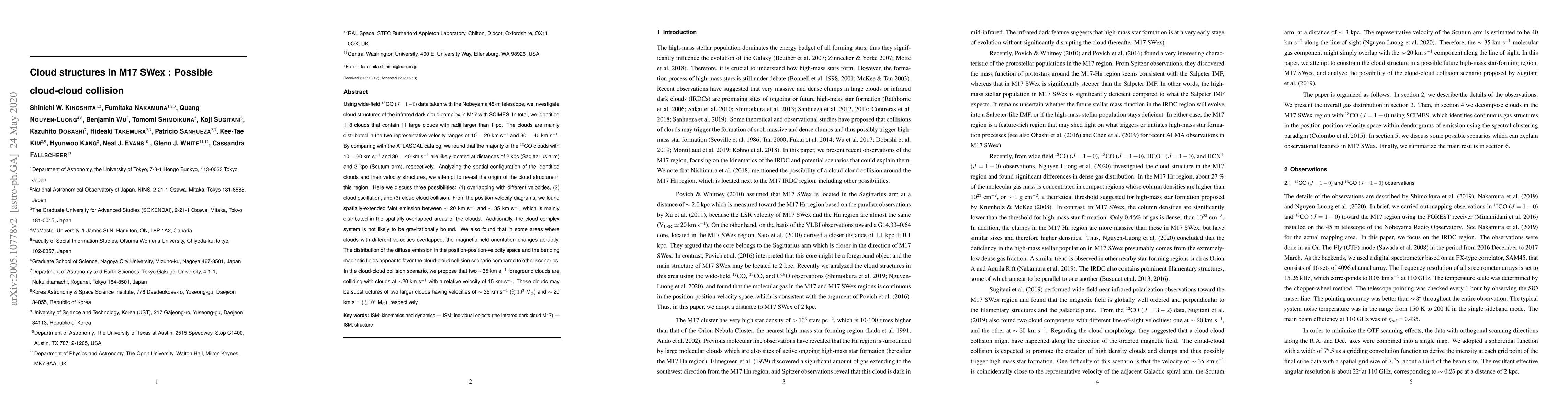 Researchers used $^{13}$CO data to study clouds in the M17 SWex infrared dark cloud complex, identifying 11 large clouds with possible cloud-cloud collision origin.
