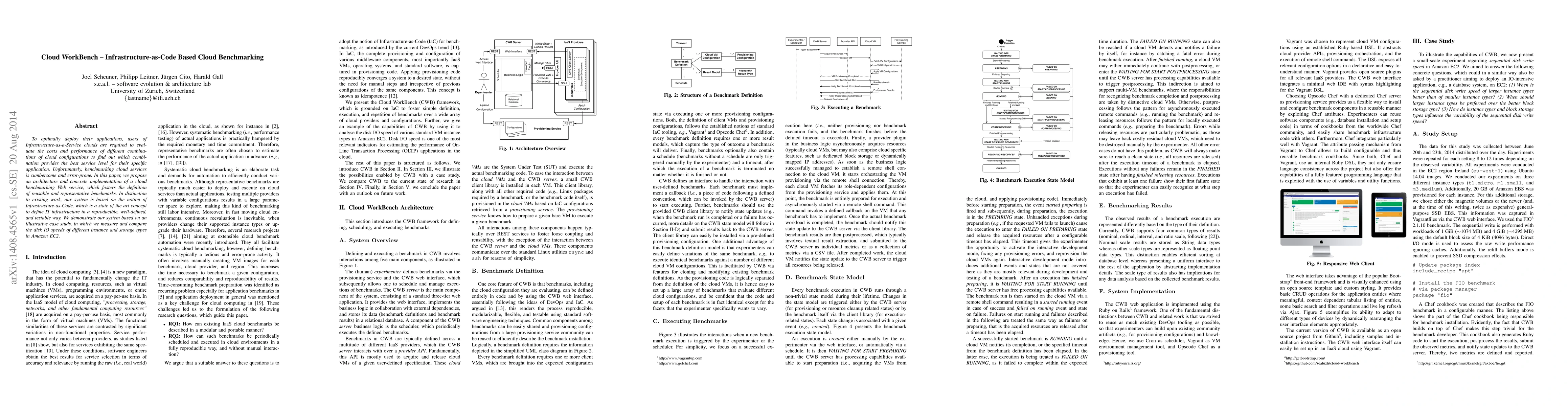 The research proposes Cloud WorkBench (CWB), a web-based framework that leverages Infrastructure-as-Code (IaC) for cloud benchmarking, automating the benchmarking lifecycle from definition to execution.