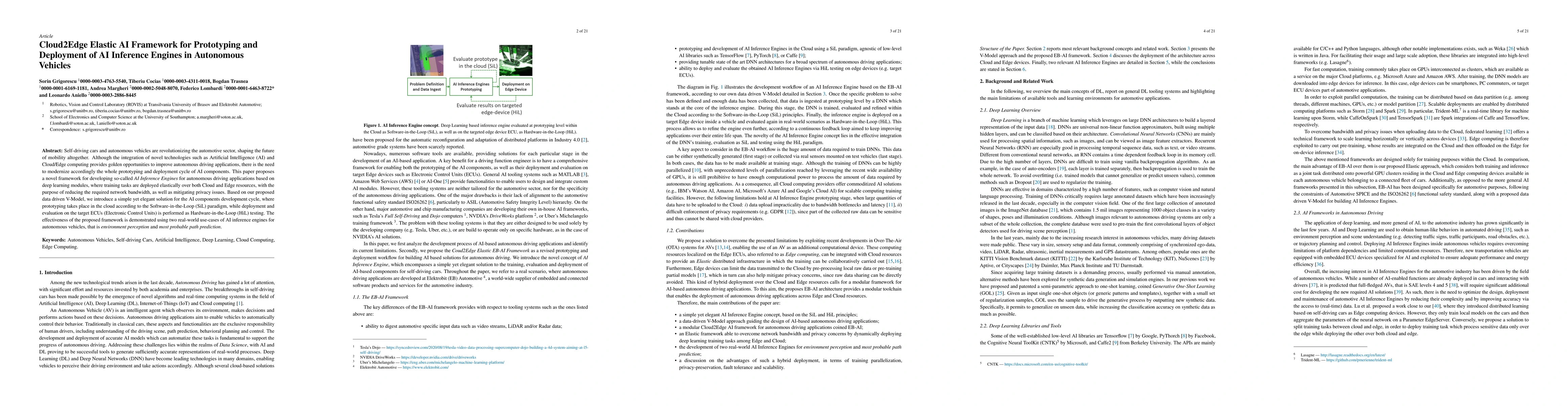 This paper introduces a Cloud2Edge Elastic AI Framework for developing AI Inference Engines in autonomous vehicles, utilizing both Cloud and Edge resources to optimize training and reduce bandwidth. The proposed V-Model facilitates prototyping in the cloud and deployment on Electronic Control Units via Hardware-in-the-Loop testing.
