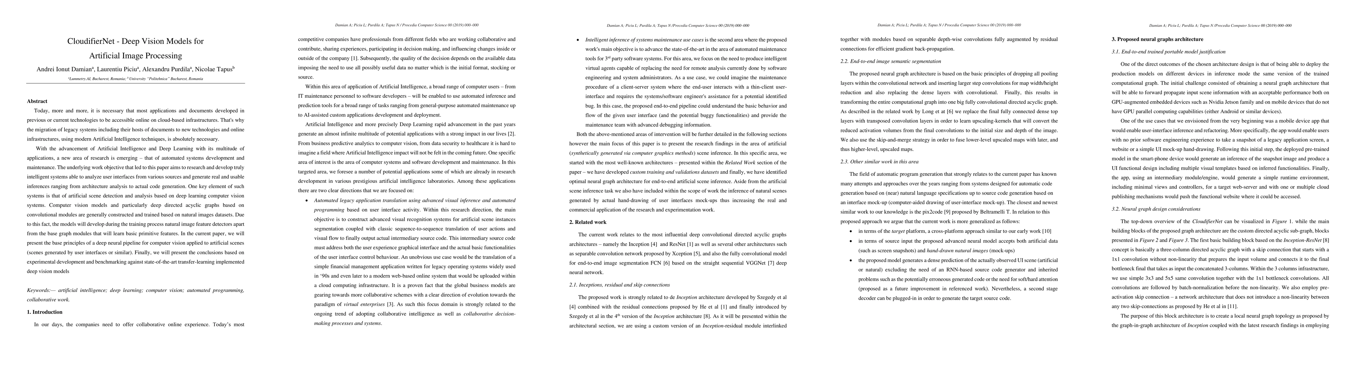 CloudifierNet introduces deep vision models for analyzing and generating inferences from artificial scenes, particularly user interfaces, leveraging advanced computer vision techniques. Experimental results benchmark the model against state-of-the-art deep learning methods, demonstrating its effectiveness in automated system development and maintenance.