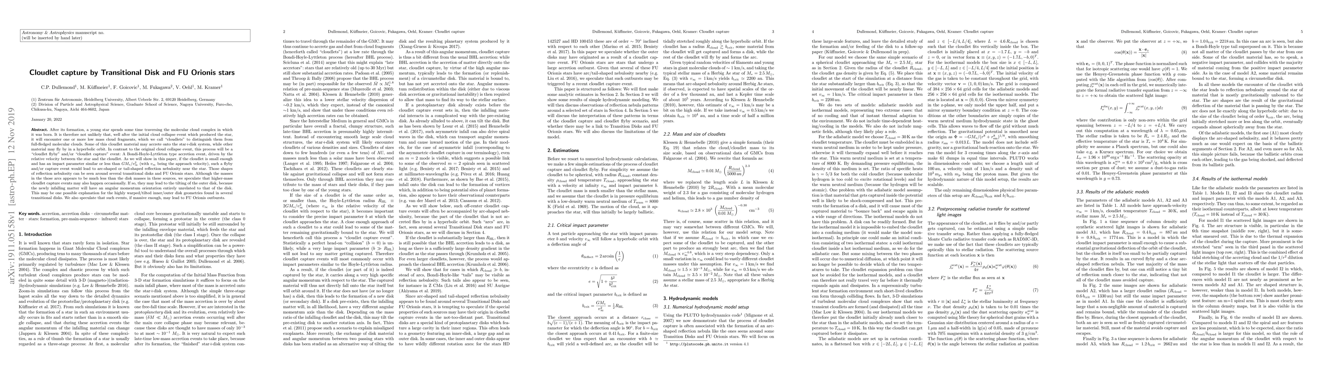 This paper investigates how low-mass cloud fragments, termed "cloudlets," may interact with young stars, potentially leading to accretion events that create arc-shaped or tail-shaped reflection nebulosity. It suggests that such interactions could also cause disk tilting and potentially trigger FU Orionis outbursts.