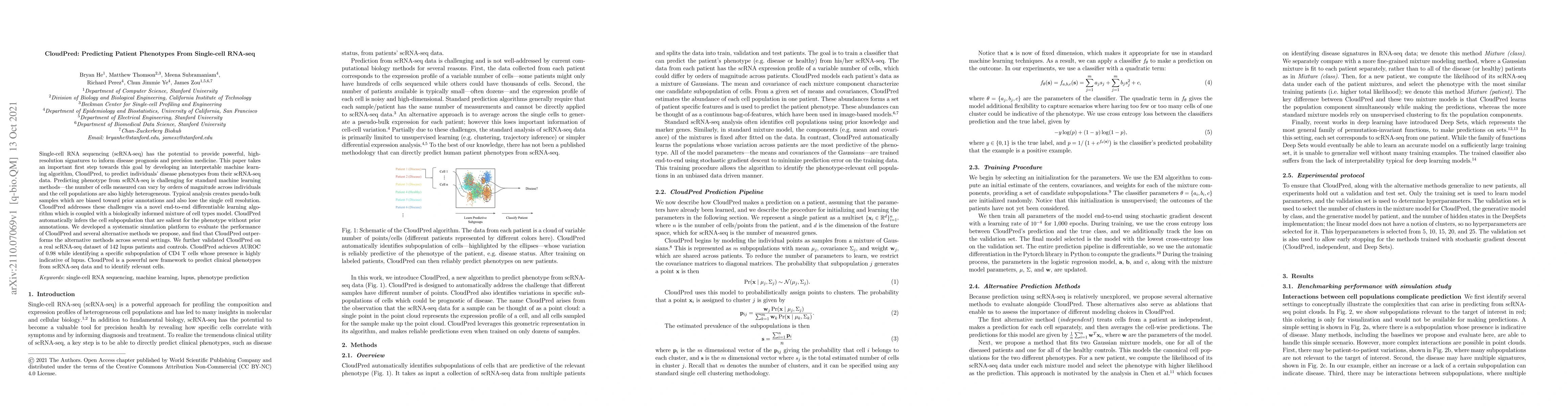 CloudPred is an interpretable machine learning algorithm developed to predict disease phenotypes from single-cell RNA-seq data, addressing challenges of variable cell counts and heterogeneity. It outperforms alternative methods and identifies a specific CD4 T cell subpopulation indicative of lupus in a real dataset.