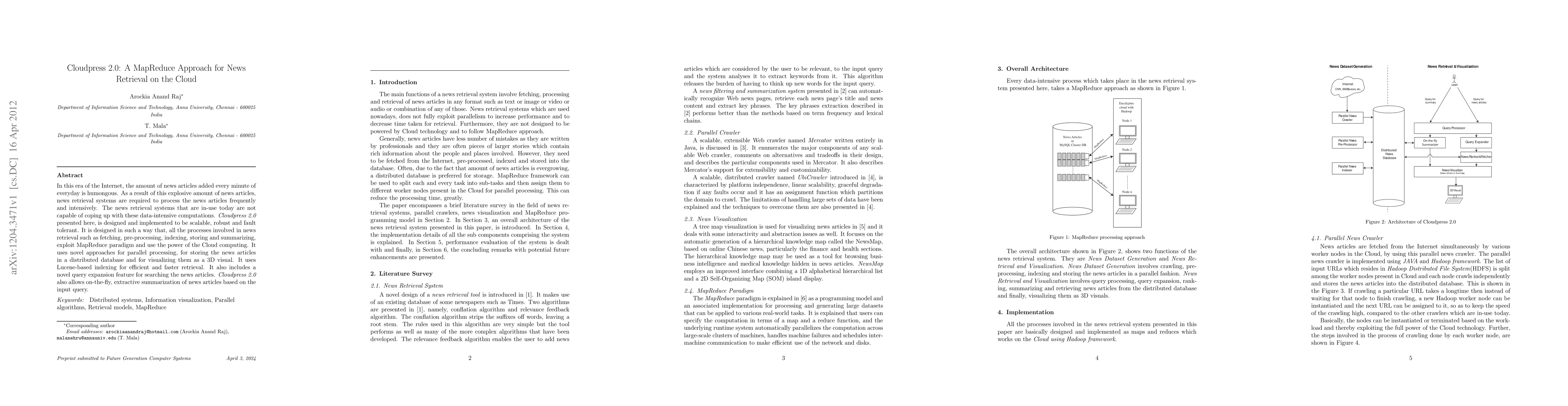 In this era of the Internet, the amount of news articles added every minute of everyday is humongous. As a result of this explosive amount of news articles, news retrieval systems are required to process the news articles frequently and intensively. The news retrieval systems that are in-use today are not capable of coping up with these data-intensive computations. Cloudpress 2.0 presented here, is designed and implemented to be scalable, robust and fault tolerant. It is designed in such a way that, all the processes involved in news retrieval such as fetching, pre-processing, indexing, storing and summarizing, exploit MapReduce paradigm and use the power of the Cloud computing. It uses novel approaches for parallel processing, for storing the news articles in a distributed database and for visualizing them as a 3D visual. It uses Lucene-based indexing for efficient and faster retrieval. It also includes a novel query expansion feature for searching the news articles. Cloudpress 2.0 also allows on-the-fly, extractive summarization of news articles based on the input query.