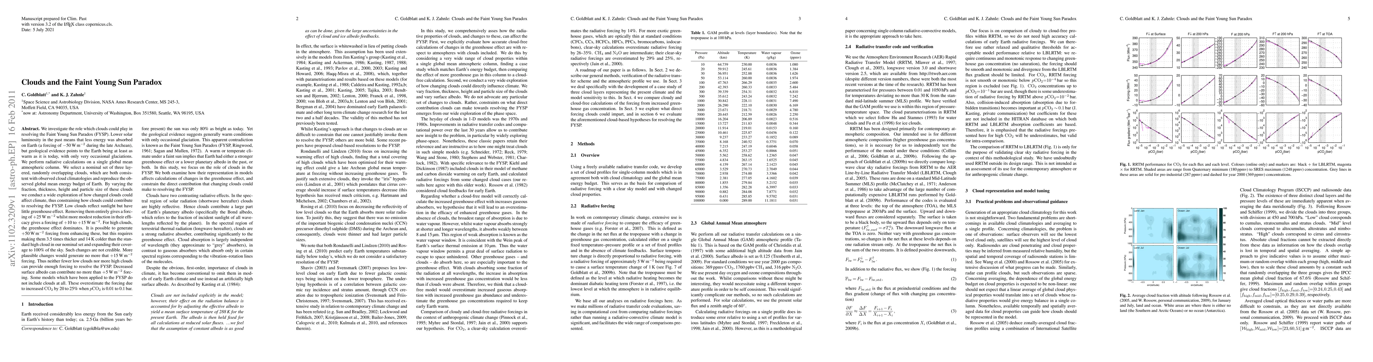 We investigate the role which clouds could play in resolving the Faint Young Sun Paradox (FYSP). Lower solar luminosity in the past means that less energy was absorbed on Earth (a forcing of -50 Wm-2 during the late Archean), but geological evidence points to the Earth being at least as warm as it is today, with only very occasional glaciations. We perform radiative calculations on a single global mean atmospheric column. We select a nominal set of three layered, randomly overlapping clouds, which are both consistent with observed cloud climatologies and reproduce the observed global mean energy budget of Earth. By varying the fraction, thickness, height and particle size of these clouds we conduct a wide exploration of how changed clouds could affect climate, thus constraining how clouds could contribute to resolving the FYSP. Low clouds reflect sunlight but have little greenhouse effect. Removing them entirely gives a~forcing of +25 Wm-2 whilst more modest reduction in their efficacy gives a forcing of +10 to +15 Wm-2. For high clouds, the greenhouse effect dominates. It is possible to generate +50 Wm-2 forcing from enhancing these, but this requires making them 3.5 times thicker and 14 K colder than the standard high cloud in our nominal set and expanding their coverage to 100% of the sky. Such changes are not credible. More plausible changes would generate no more that +15 Wm-2 forcing. Thus neither fewer low clouds nor more high clouds can provide enough forcing to resolve the FYSP. Decreased surface albedo can contribute no more than +5 Wm-2 forcing. Some models which have been applied to the FYSP do not include clouds at all. These overestimate the forcing due to increased CO2 by 20 to 25% when CO2 is 0.01 to 0.1 bar.