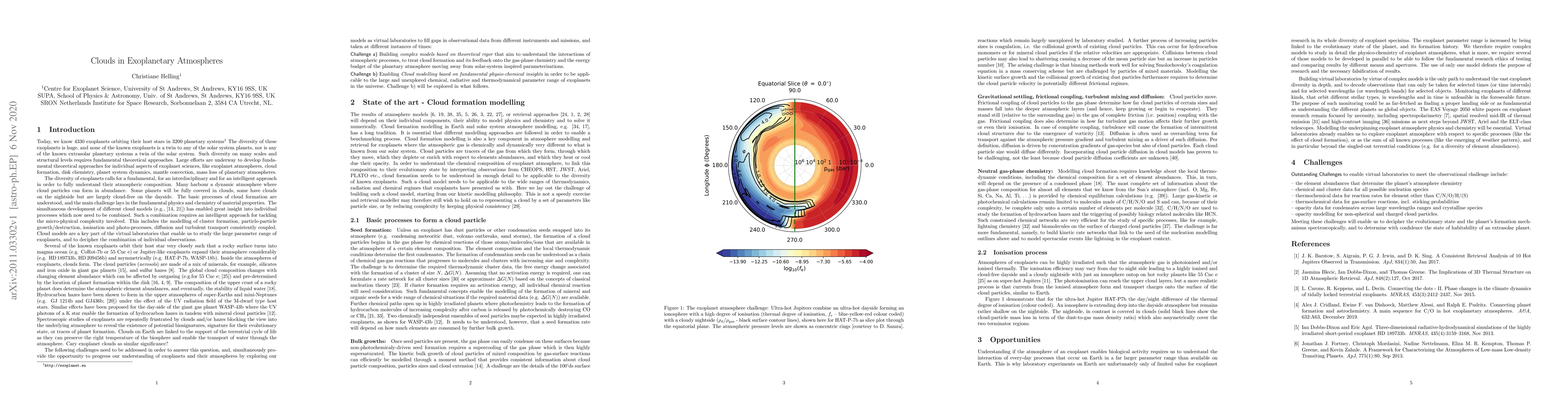 Today, we know ~4330 exoplanets orbiting their host stars in ~3200 planetary systems. The diversity of these exoplanets is large, and none of the known exoplanets is a twin to any of the solar system planets, nor is any of the known extrasolar planetary systems a twin of the solar system. Such diversity on many scales and structural levels requires fundamental theoretical approaches. Large efforts are underway to develop individual aspects of exoplanet sciences, like exoplanet atmospheres, cloud formation, disk chemistry, planet system dynamics, mantle convection, mass loss of planetary atmospheres. The following challenges need to be addressed in tandem with observational efforts. They provide the opportunity to progress our understanding of exoplanets and their atmospheres by exploring our models as virtual laboratories to fill gaps in observational data from different instruments and missions, and taken at different instances of times: Challenge a) Building complex models based on theoretical rigour that aim to understand the interactions of atmospheric processes, to treat cloud formation and its feedback onto the gas-phase chemistry and the energy budget of the planetary atmosphere moving away from solar-system inspired parameterisations. Challenge b) Enabling cloud modelling based on fundamental physio-chemical insights in order to be applicable to the large and unexplored chemical, radiative and thermodynamical parameter range of exoplanets in the universe. Challenge b) will be explored in this chapter of the book ExoFrontiers.