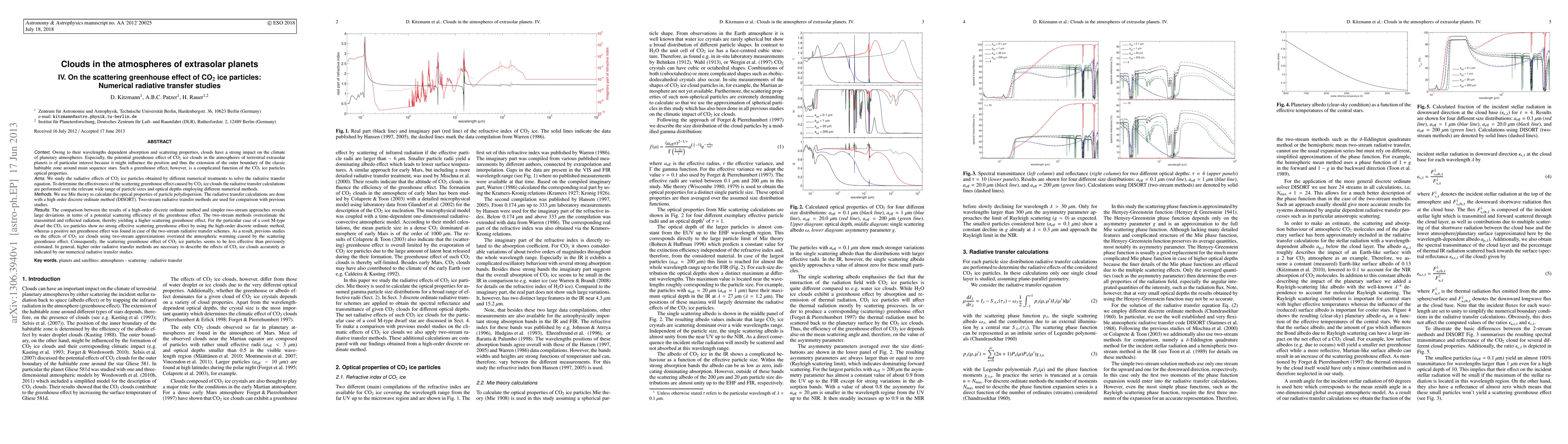 This paper investigates the radiative effects of CO2 ice clouds in extrasolar planet atmospheres using advanced numerical methods, finding that high-order discrete ordinate methods reveal a less effective scattering greenhouse effect compared to simpler two-stream approaches. The study concludes that previous overestimations of CO2 ice clouds' warming potential were due to inadequate radiative transfer modeling.