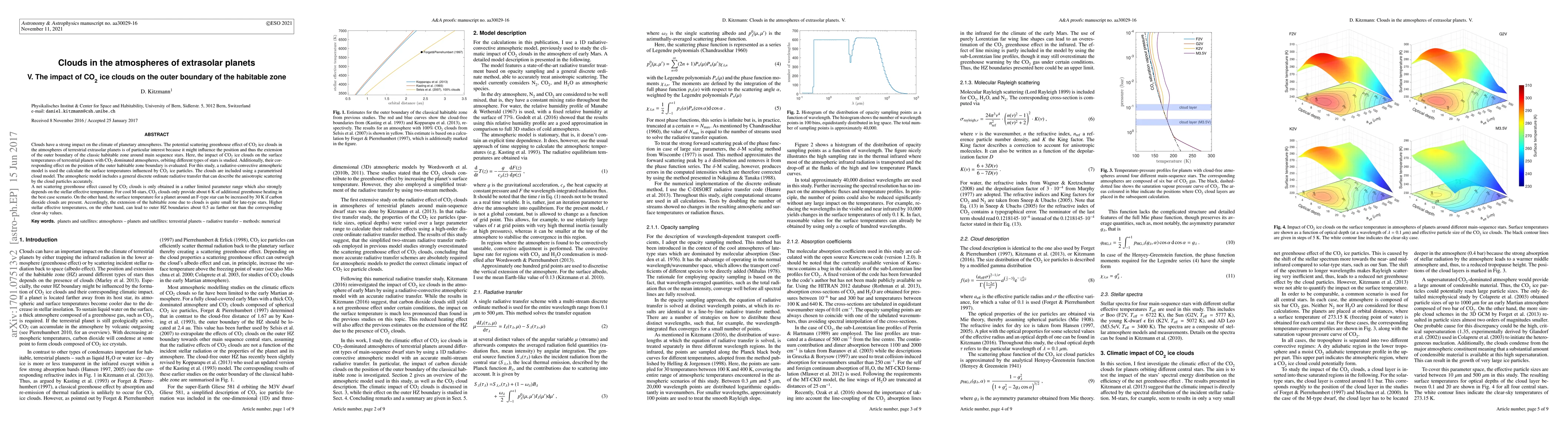 This paper investigates the influence of CO2 ice clouds on the climate of terrestrial extrasolar planets, finding that they can significantly alter surface temperatures and extend the habitable zone, especially around F-type stars where they can increase temperatures by up to 30 K, while their effect is minimal around cooler M-type stars.