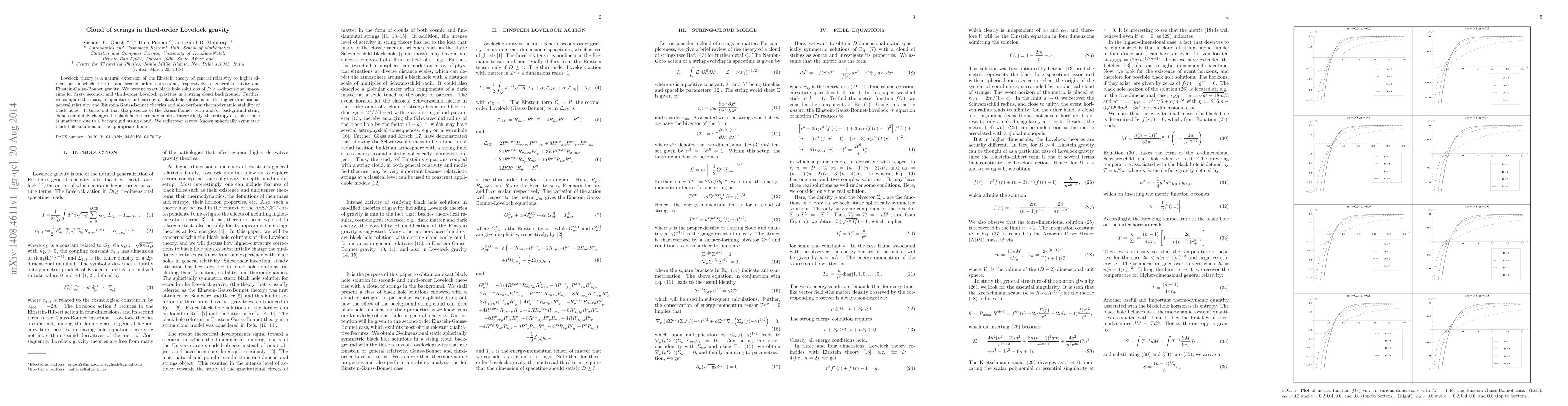 This paper explores exact black hole solutions in $D\geq 4$-dimensional spacetimes for first-, second-, and third-order Lovelock gravities with string cloud backgrounds, revealing significant changes in thermodynamics due to the Gauss-Bonnet term and string cloud, while black hole entropy remains unaffected by the string cloud.