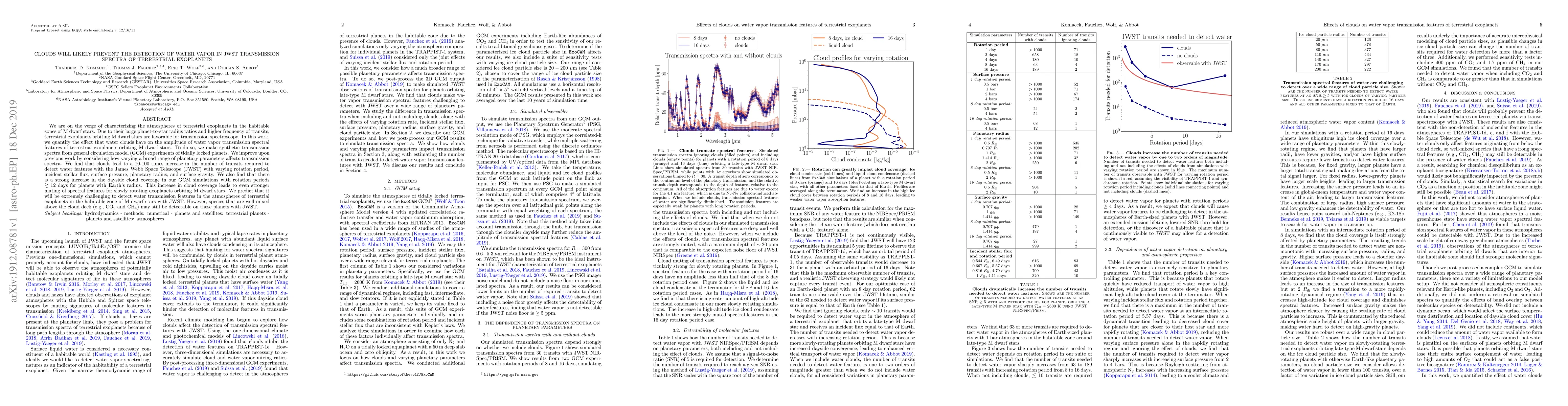 This paper quantifies the impact of water clouds on the detection of water vapor in the atmospheres of terrestrial exoplanets using JWST transmission spectroscopy. It finds that clouds significantly increase the number of transits needed to detect water vapor, making it extremely challenging, while well-mixed gases like CO$_2$ and CH$_4$ may still be detectable.
