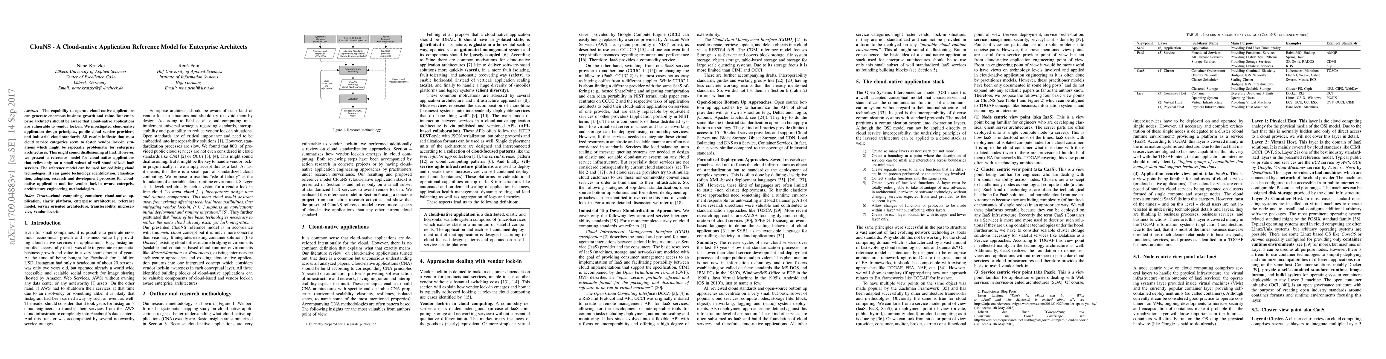 The paper "ClouNS - A Cloud-native Application Reference Model for Enterprise Architects" proposes a reference model to mitigate vendor lock-in in cloud-native applications by relying on a small subset of well-standardized IaaS services. This model aims to guide enterprise architecture engineering methodologies in technology identification, classification, adoption, and development.
