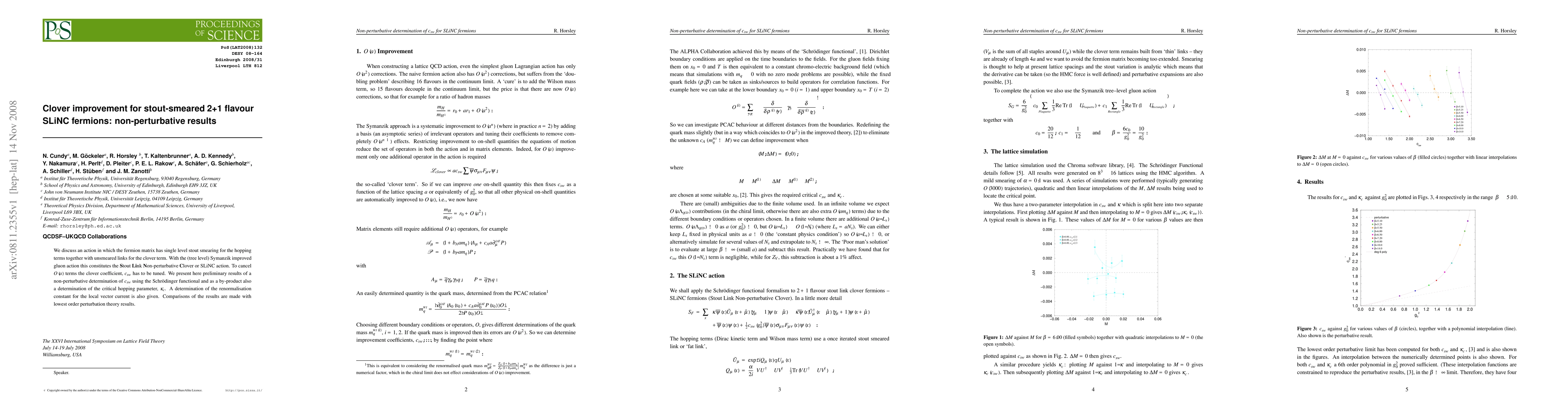 We discuss an action in which the fermion matrix has single level stout smearing for the hopping terms together with unsmeared links for the clover term. With the (tree level) Symanzik improved gluon action this constitutes the Stout Link Non-perturbative Clover or SLiNC action. To cancel O(a) terms the clover coefficient, csw, has to be tuned. We present here preliminary results of a non-perturbative determination of csw using the Schrodinger functional and as a by-product also a determination of the critical hopping parameter. A determination of the renormalisation constant for the local vector current is also given. Comparisons of the results are made with lowest order perturbation theory results.
