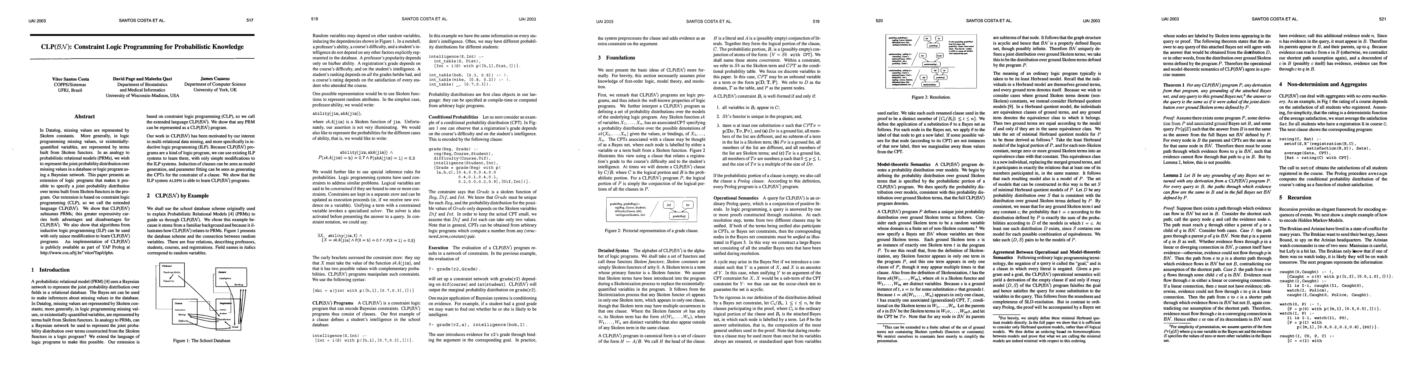 The paper defines CLP(BN), a new framework that extends logic programming to represent a joint probability distribution over ground Skolem terms, subsuming Probabilistic Relational Models (PRMs) while incorporating features like recursion, non-determinism, and function symbols.