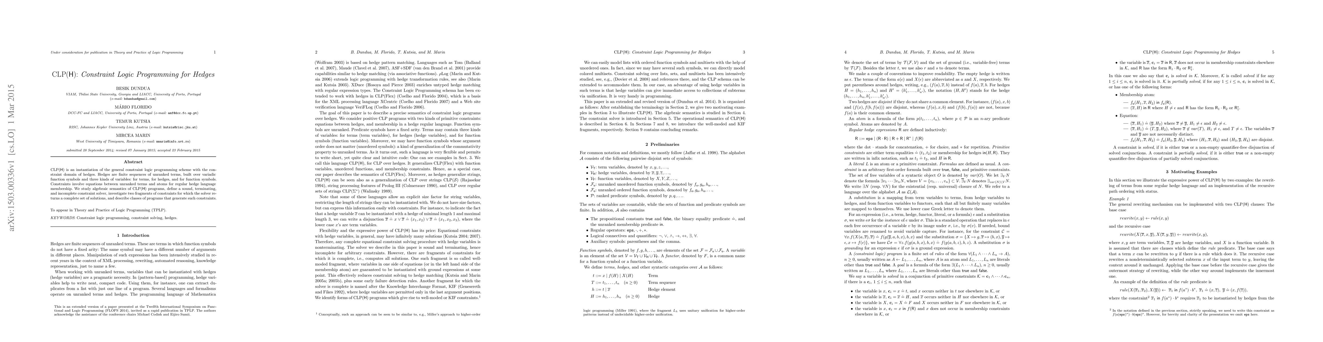 CLP(H) extends constraint logic programming to handle hedges, finite sequences of unranked terms. The paper explores its algebraic semantics, presents a constraint solver, and identifies fragments yielding complete solutions.