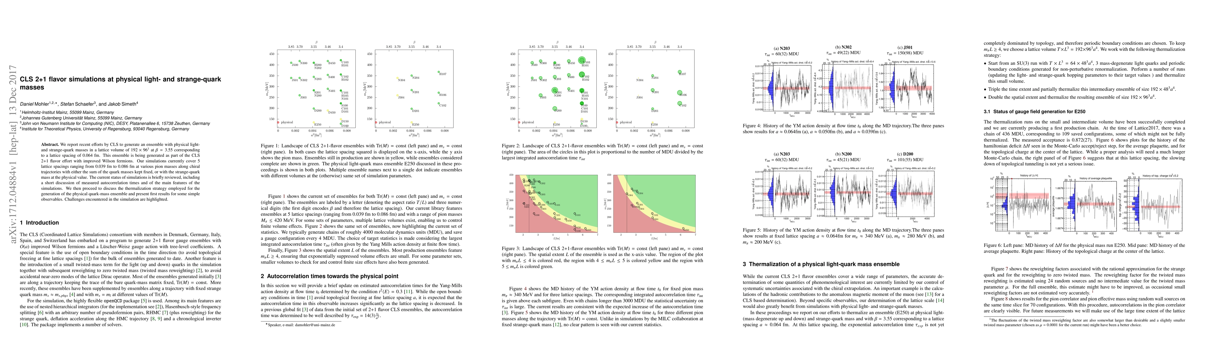 We report recent efforts by CLS to generate an ensemble with physical light- and strange-quark masses in a lattice volume of 192x96^3 at $\beta=3.55$ corresponding to a lattice spacing of 0.064 fm. This ensemble is being generated as part of the CLS 2+1 flavor effort with improved Wilson fermions. Our simulations currently cover 5 lattice spacings ranging from 0.039 fm to 0.086 fm at various pion masses along chiral trajectories with either the sum of the quark masses kept fixed, or with the strange-quark mass at the physical value. The current status of simulations is briefly reviewed, including a short discussion of measured autocorrelation times and of the main features of the simulations. We then proceed to discuss the thermalization strategy employed for the generation of the physical quark-mass ensemble and present first results for some simple observables. Challenges encountered in the simulation are highlighted.