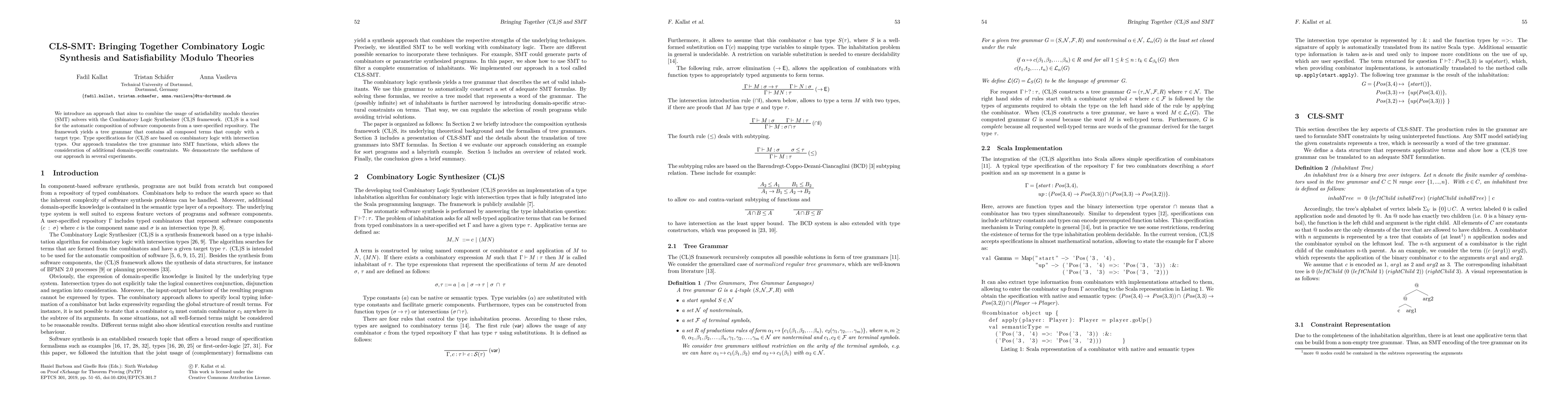 This paper introduces a method that integrates satisfiability modulo theories (SMT) solvers with the Combinatory Logic Synthesizer (CLS) framework to automatically compose software components, translating tree grammars into SMT functions to incorporate additional constraints. Experiments validate the effectiveness of the combined approach.