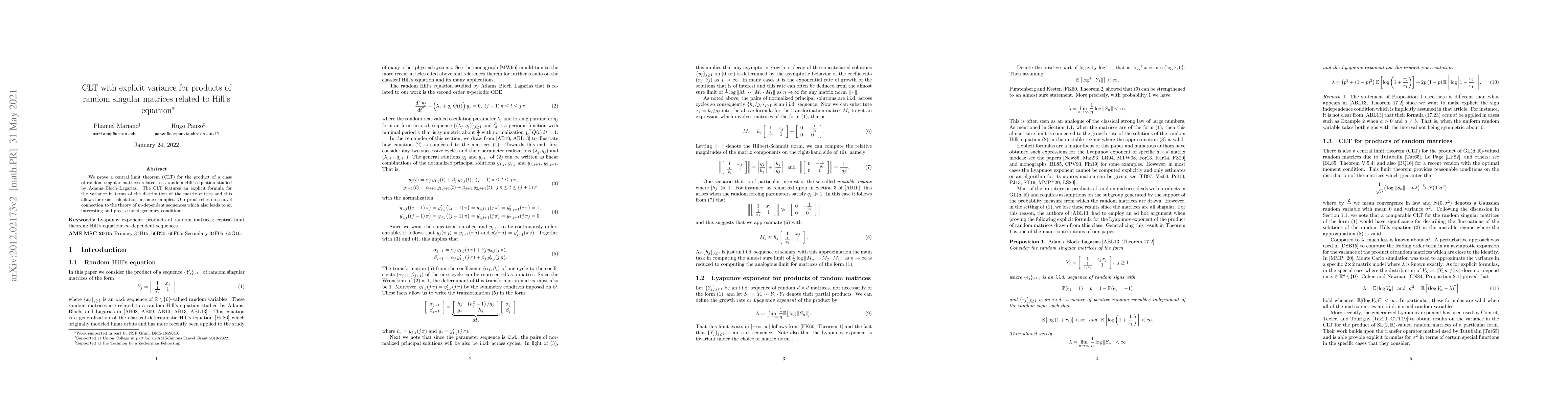 This paper proves a central limit theorem for products of random singular matrices related to Hill's equation, featuring an explicit variance formula that allows for exact calculation in some examples.