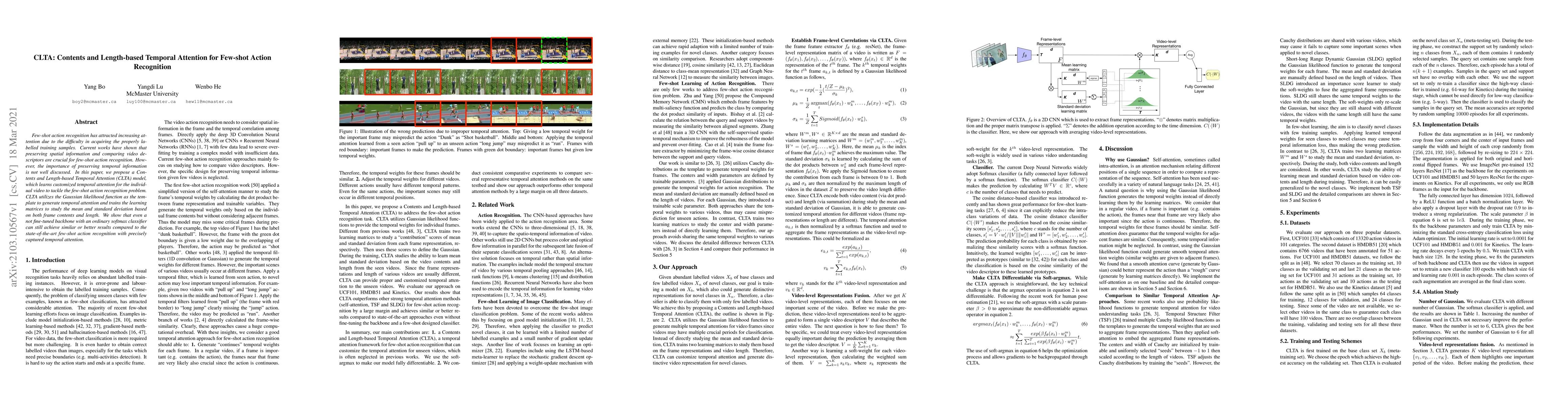 This paper proposes a Contents and Length-based Temporal Attention (CLTA) model for few-shot action recognition, emphasizing the importance of temporal information. The CLTA model generates temporal attention using a Gaussian likelihood function, adapting learning matrices based on frame contents and video length to achieve competitive recognition results.