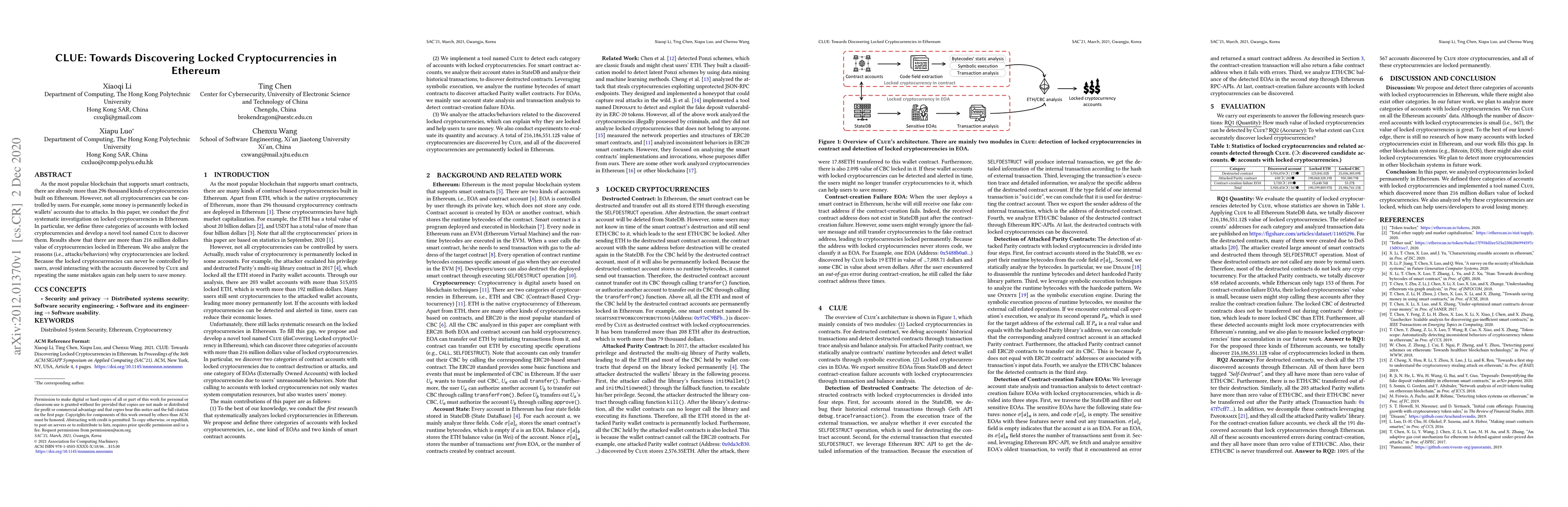 This paper investigates locked cryptocurrencies on Ethereum, categorizing them into three types and introducing a tool named CLUE to identify them. It finds over $216 million worth of cryptocurrencies permanently locked due to attacks, emphasizing the importance of avoiding these accounts to prevent financial loss.