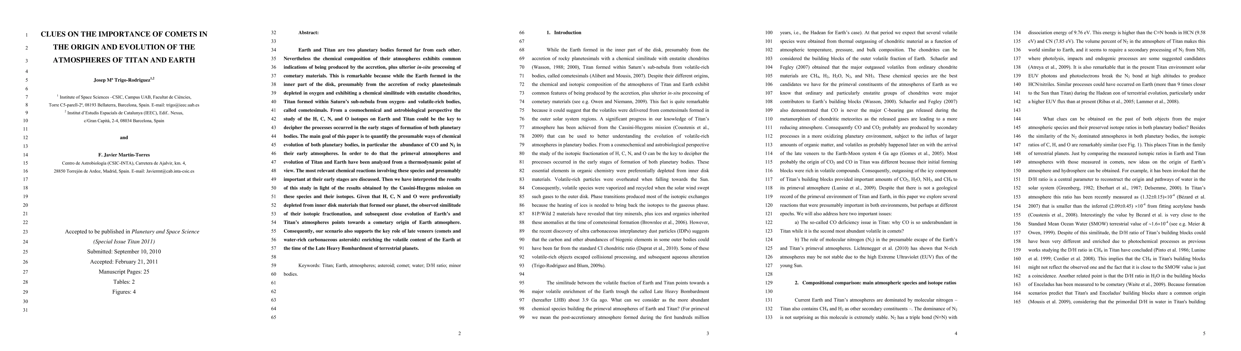 This paper investigates the role of comets in shaping the atmospheres of Earth and Titan, highlighting the similarities in their chemical compositions due to cometary accretion. It concludes that the isotopic fractionation of H, C, N, and O suggests a cometary origin for Earth's atmosphere, supporting the theory of late veneers enriching Earth's volatile content during the Late Heavy Bombardment.