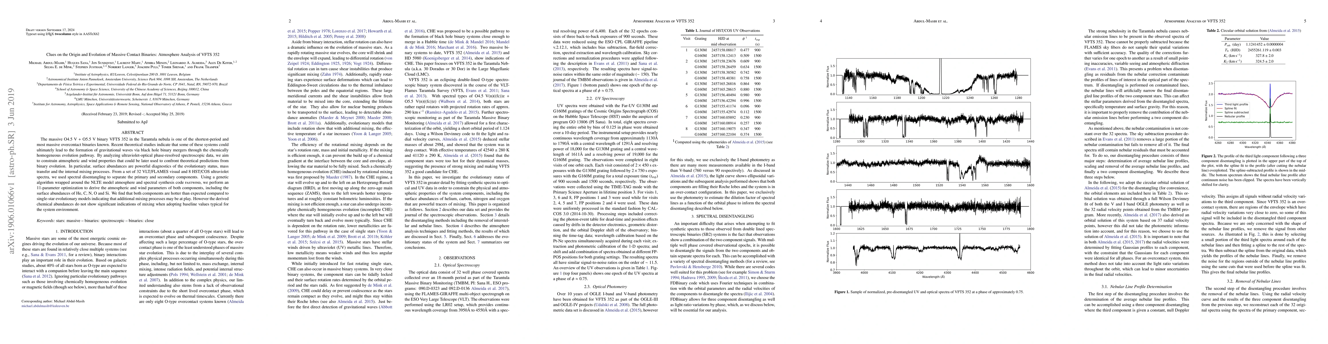 This study analyzes the massive O-type binary VFTS 352 in the Tarantula nebula using phase-resolved spectroscopy to disentangle and derive atmospheric and wind parameters, revealing hotter components than expected and suggesting additional mixing processes, though no significant chemical mixing is observed.
