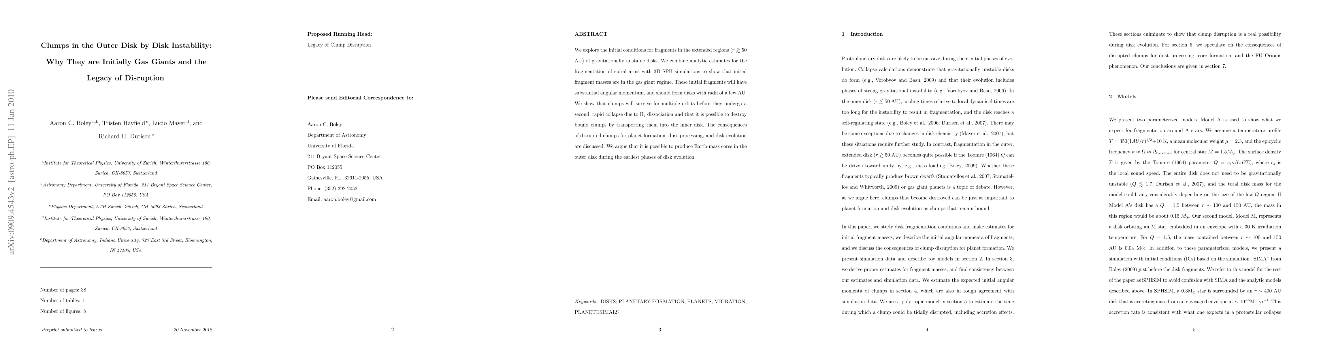 We explore the initial conditions for fragments in the extended regions ($r\gtrsim 50$ AU) of gravitationally unstable disks. We combine analytic estimates for the fragmentation of spiral arms with 3D SPH simulations to show that initial fragment masses are in the gas giant regime. These initial fragments will have substantial angular momentum, and should form disks with radii of a few AU. We show that clumps will survive for multiple orbits before they undergo a second, rapid collapse due to H$_2$ dissociation and that it is possible to destroy bound clumps by transporting them into the inner disk. The consequences of disrupted clumps for planet formation, dust processing, and disk evolution are discussed. We argue that it is possible to produce Earth-mass cores in the outer disk during the earliest phases of disk evolution.